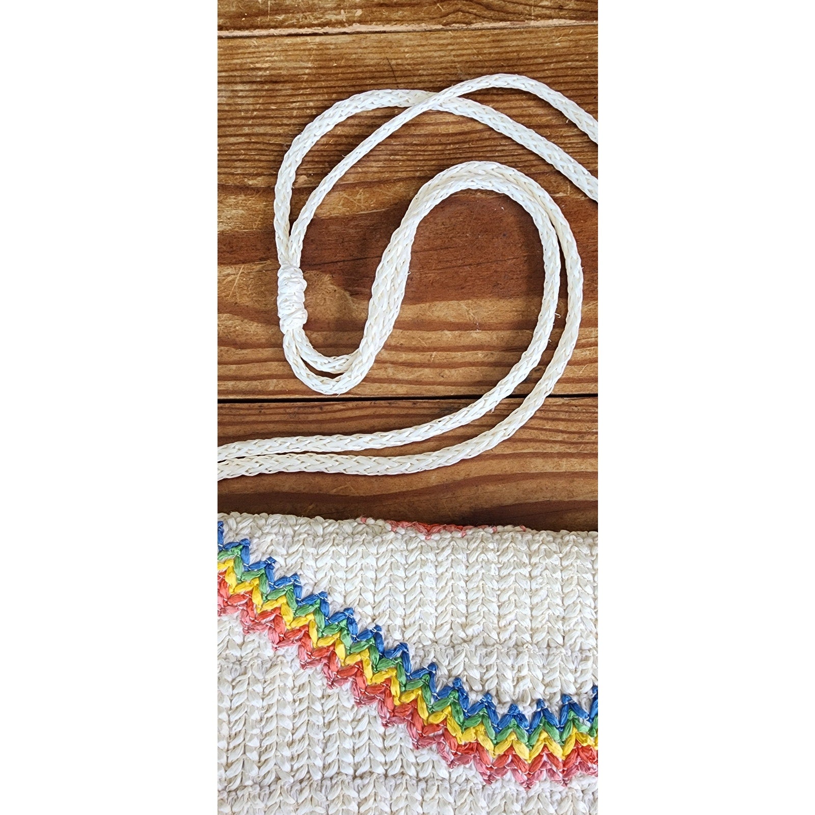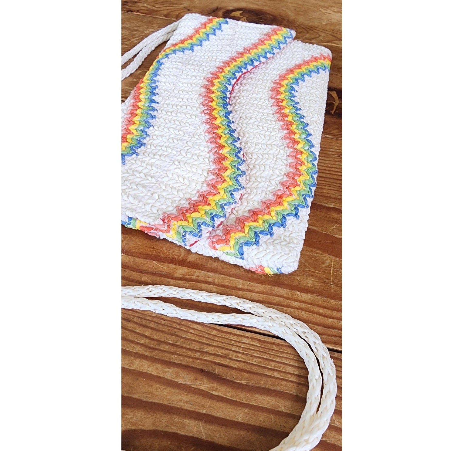 Vintage 70s Straw Shoulder Bag Rainbow Waves