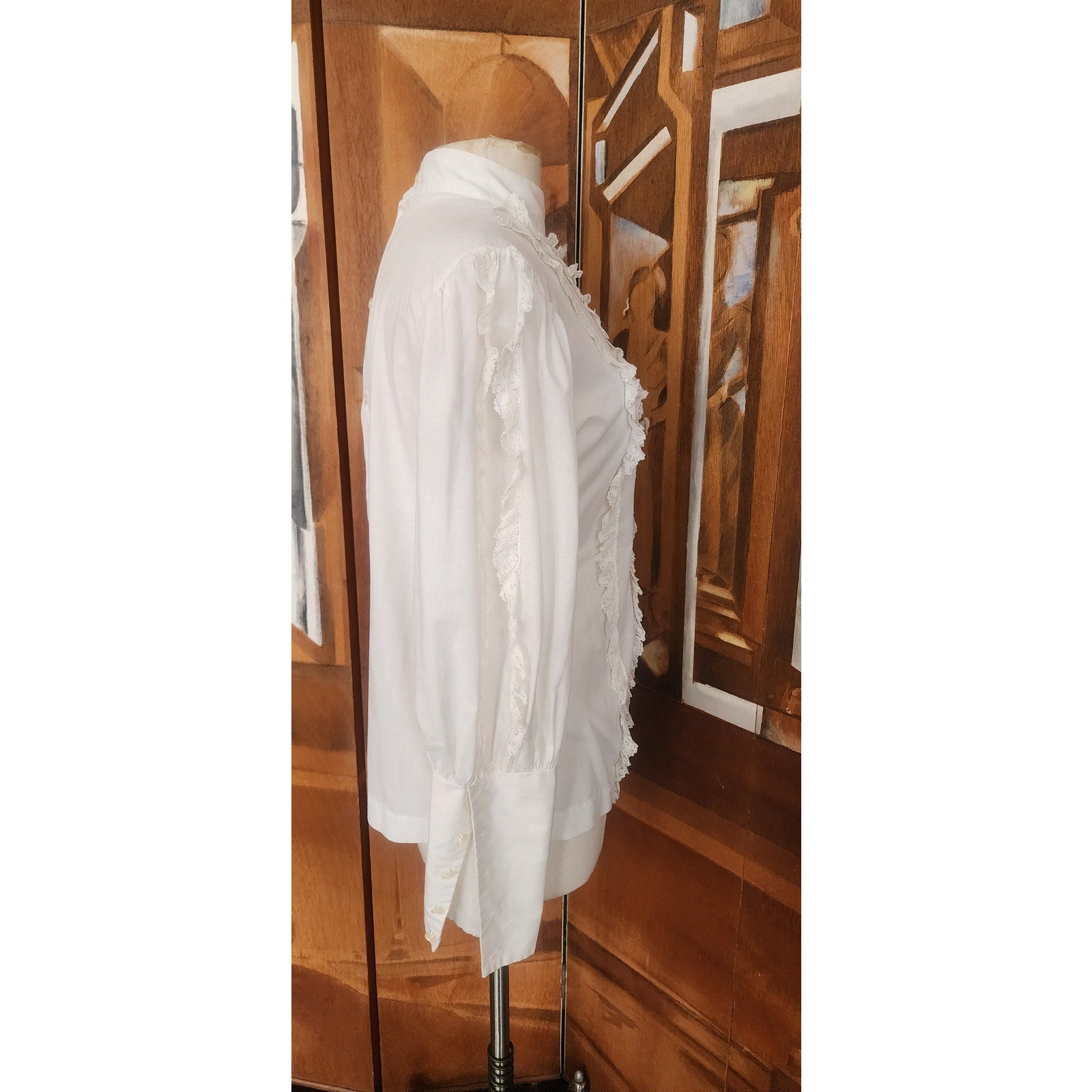 Vintage 70s White Lace Ruffled Front Shirt Long Sleeved Poet's Blouse / M