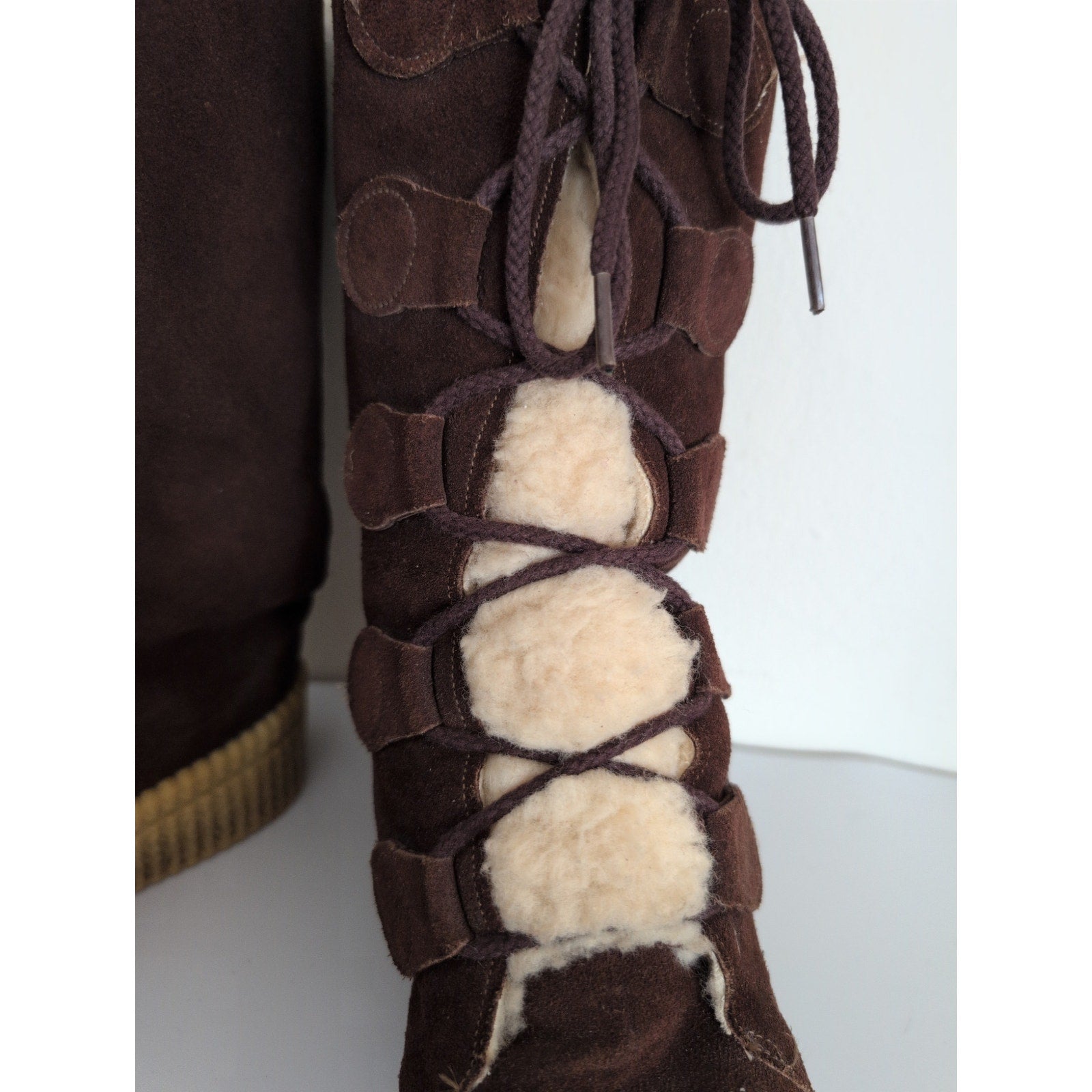 Vintage 70s Winter Boots Ladies Brown Suede + Shearling Size 9