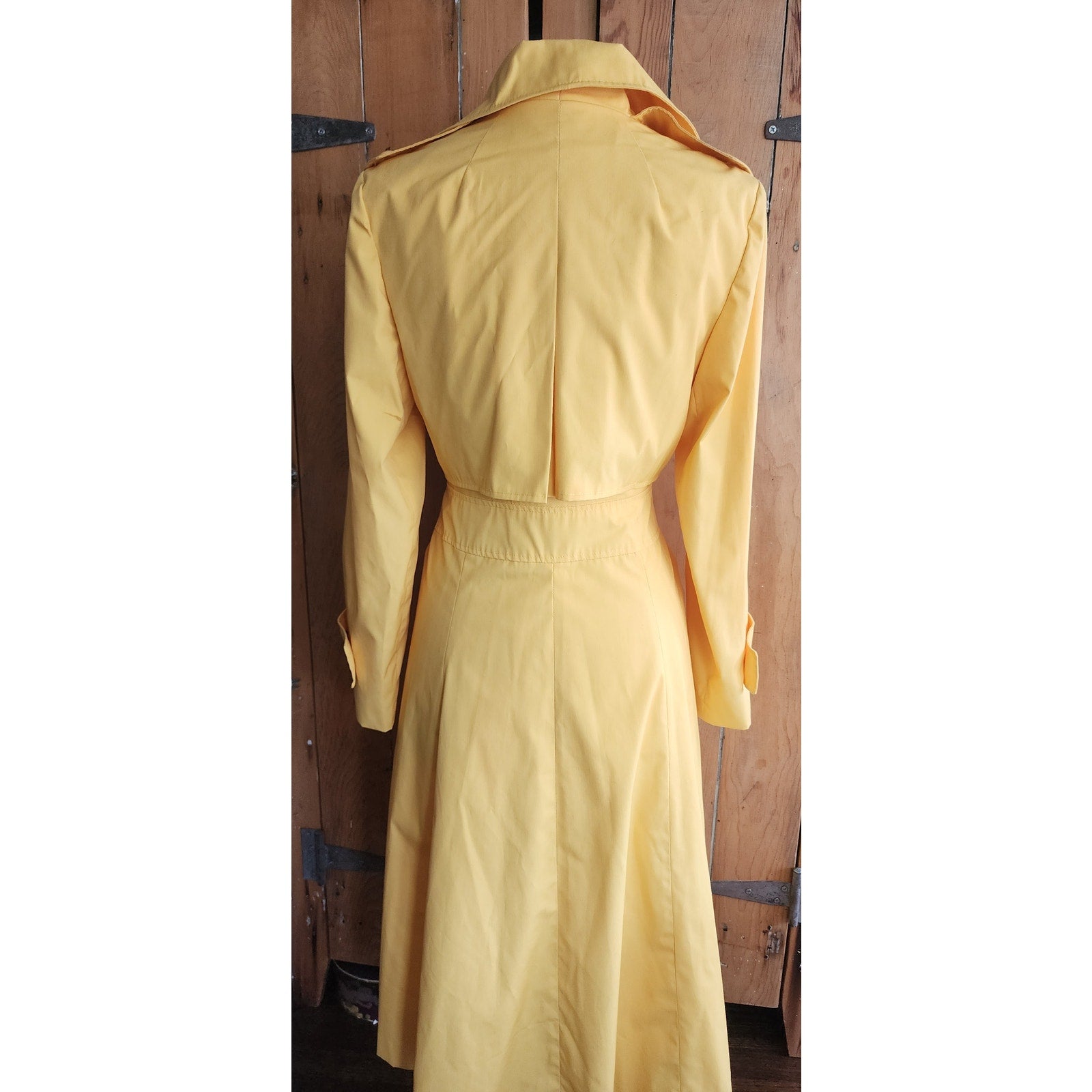 Vintage 70s Yellow Trench Coat Double Breasted Raincoat / S