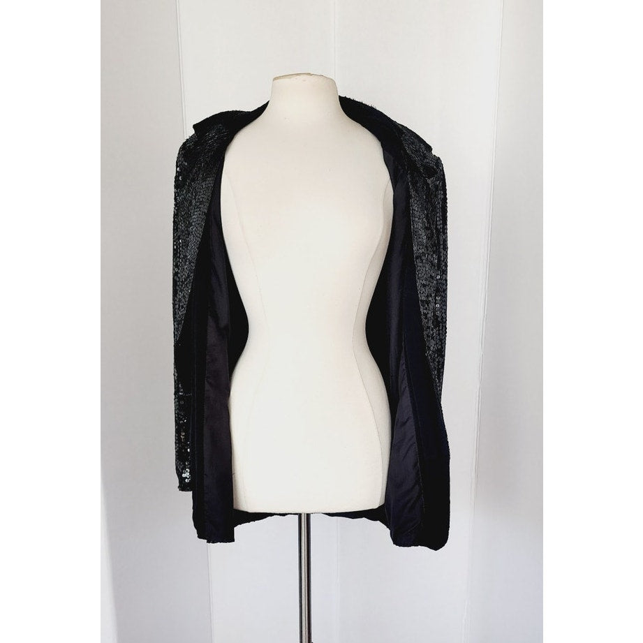 Vintage 80s Blazer Black Sequins & Beads Made in India
