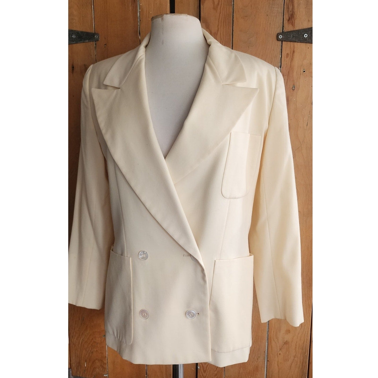 Vintage 80s Calvin Klein Blazer Cream Wool Double Breasted