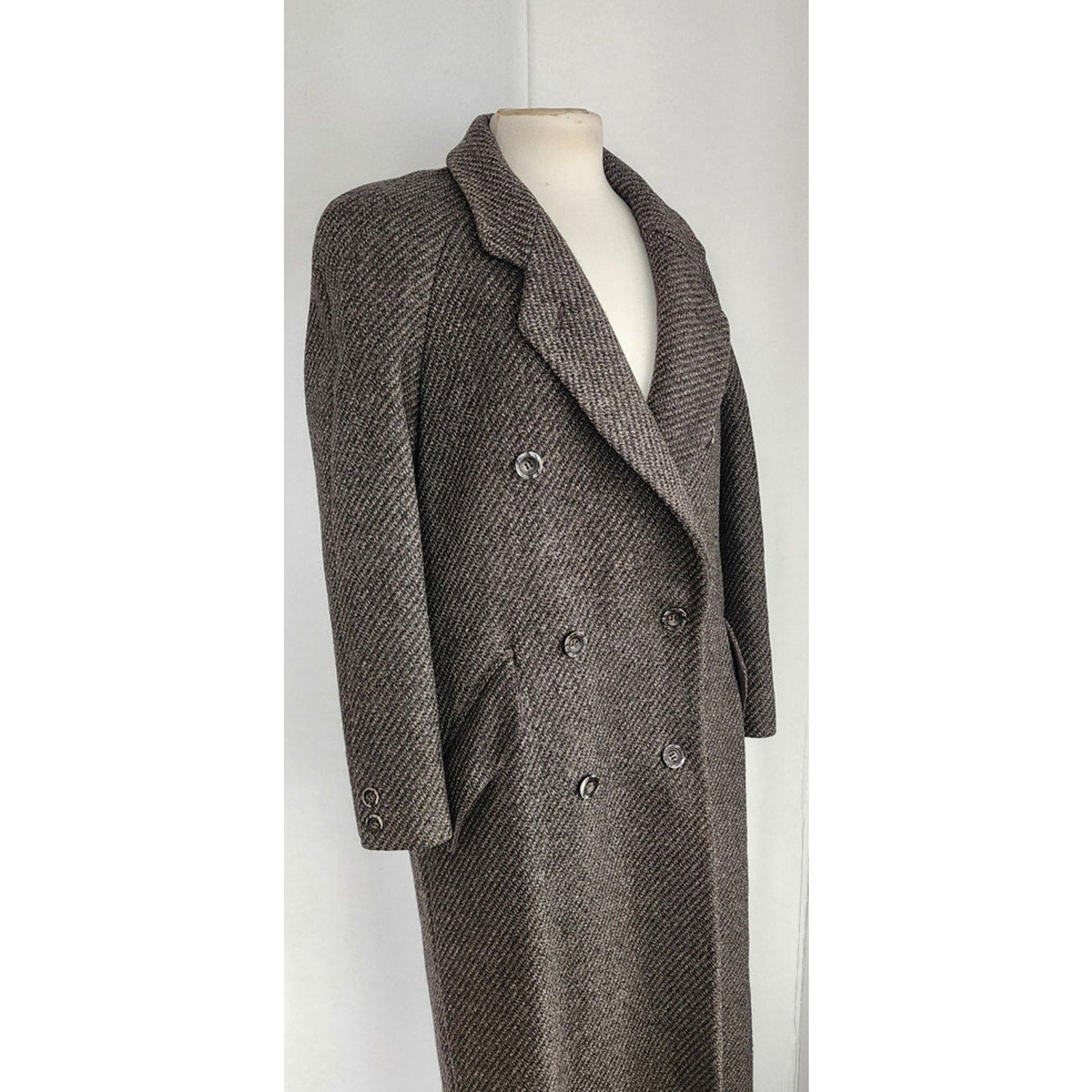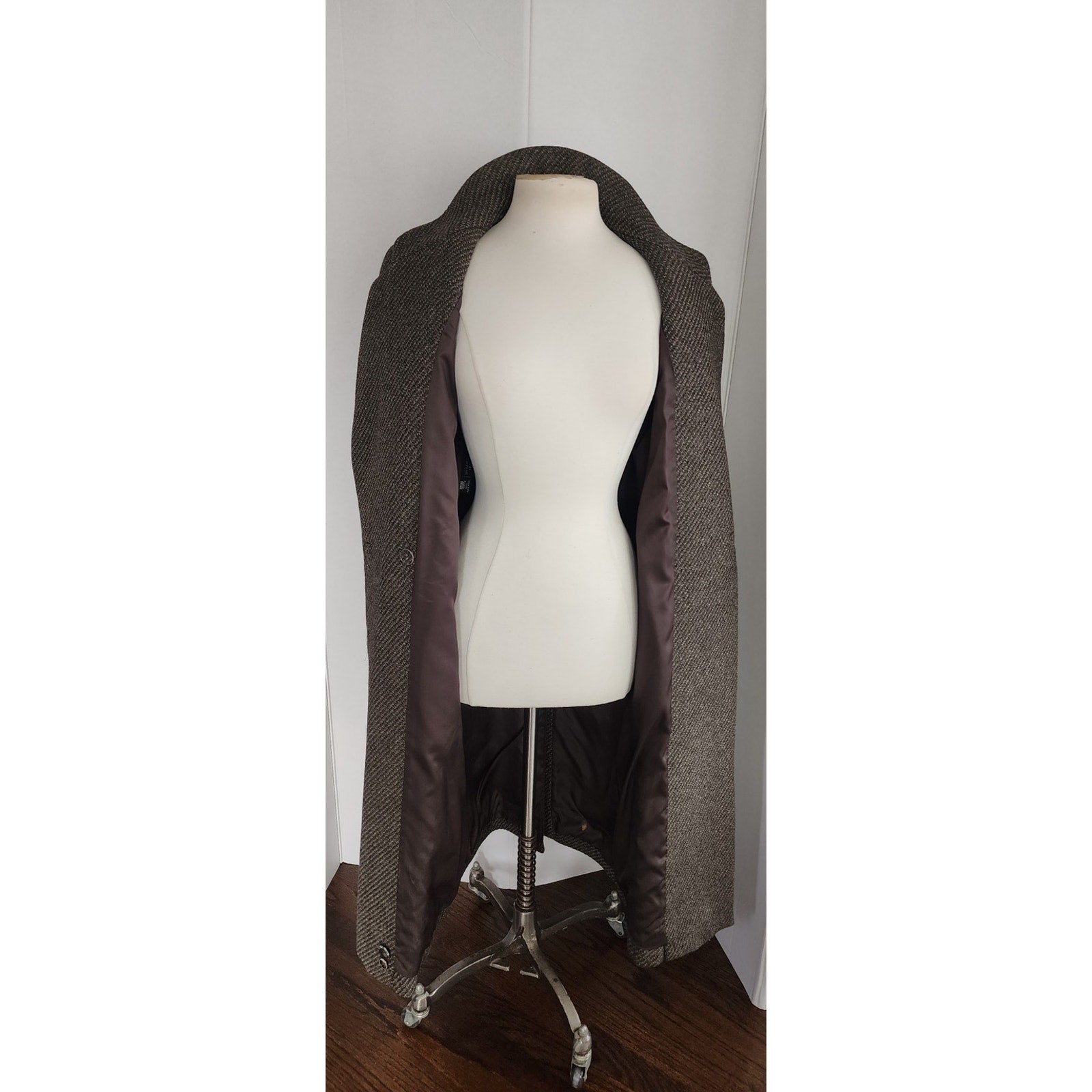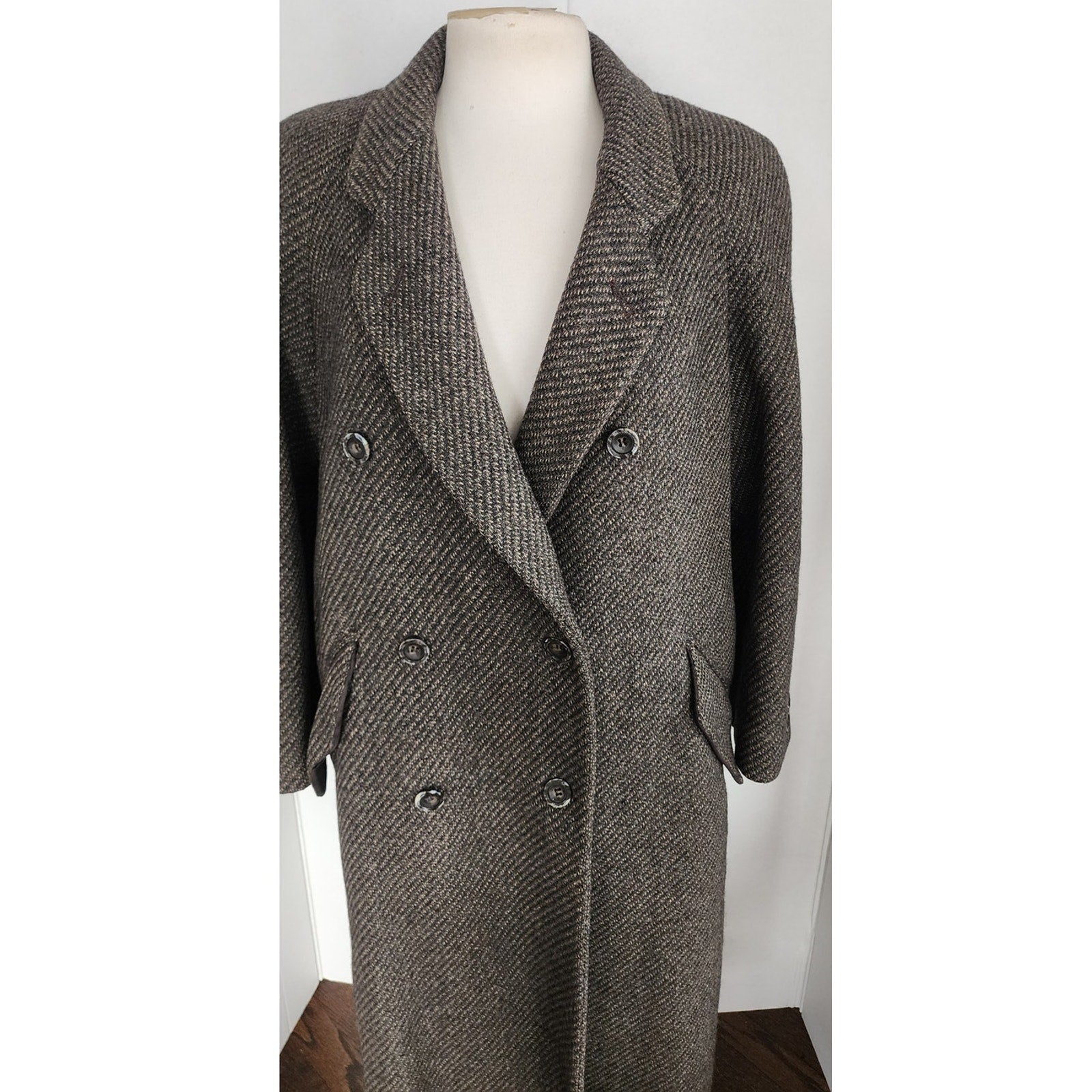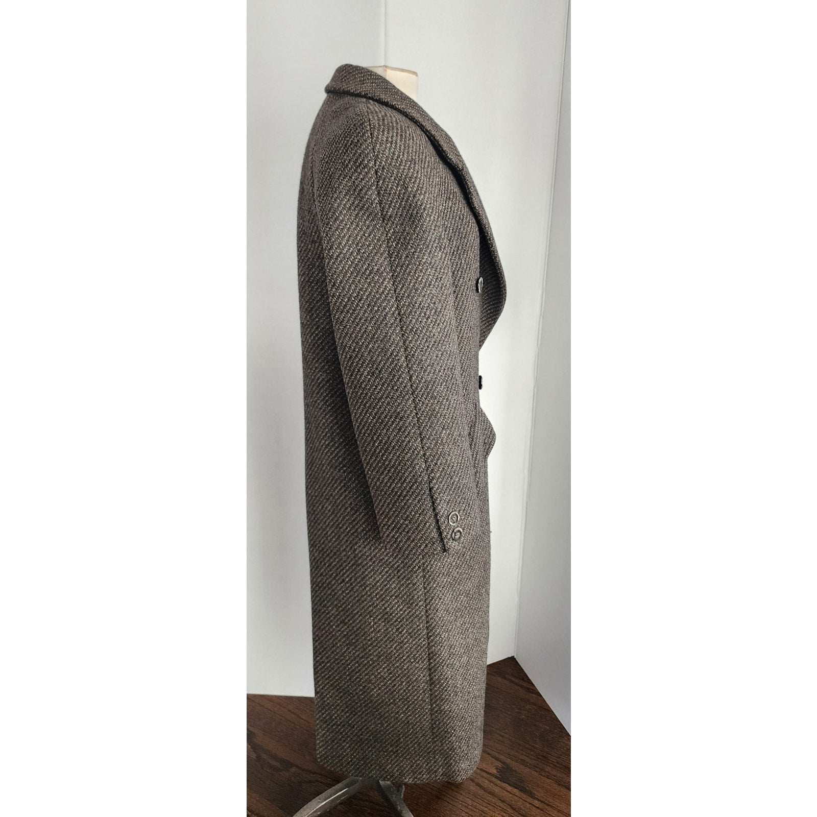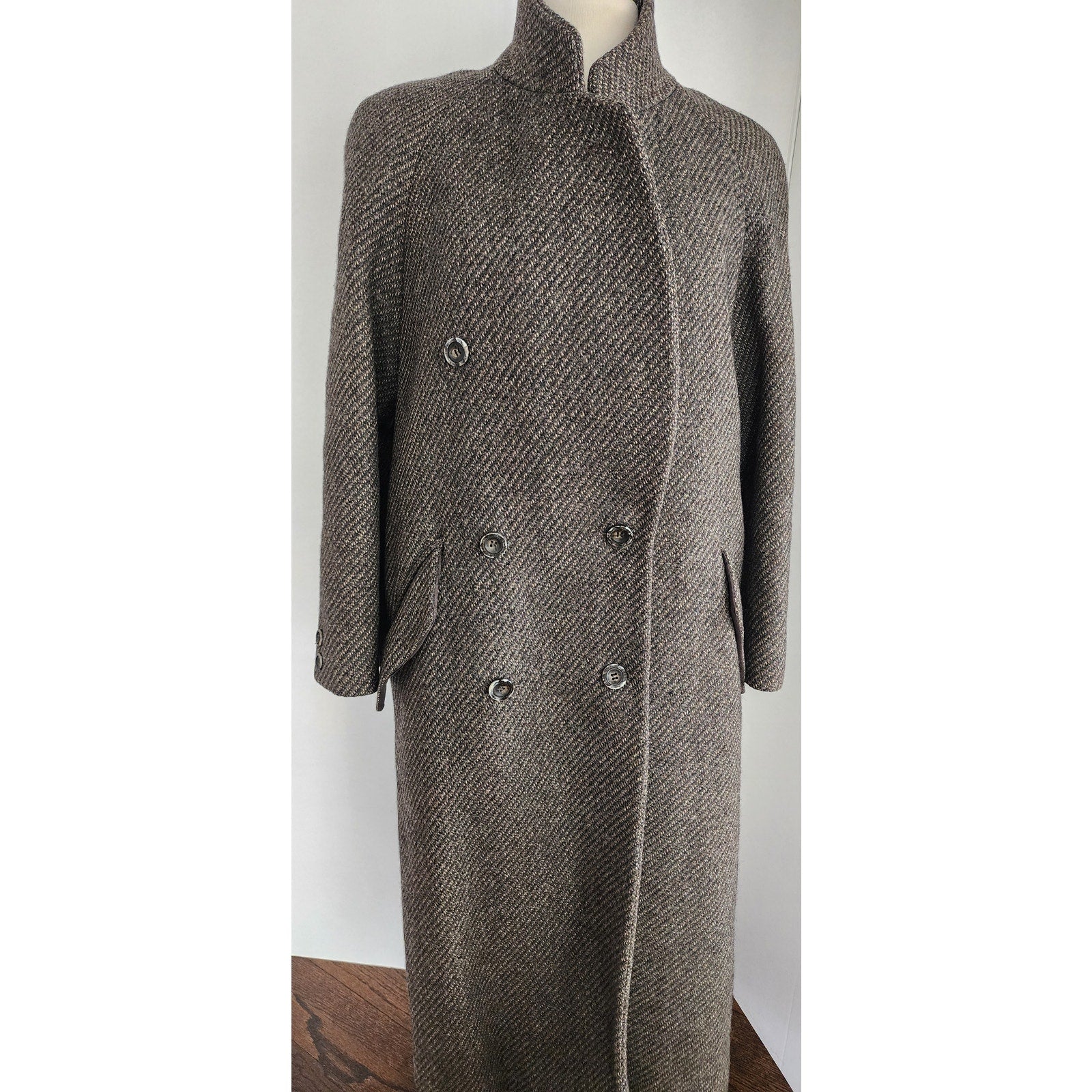 Vintage 80s Coat Gray Wool tweed Double Breasted Harve Benard