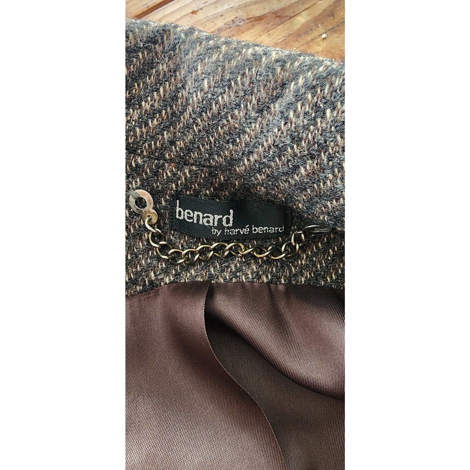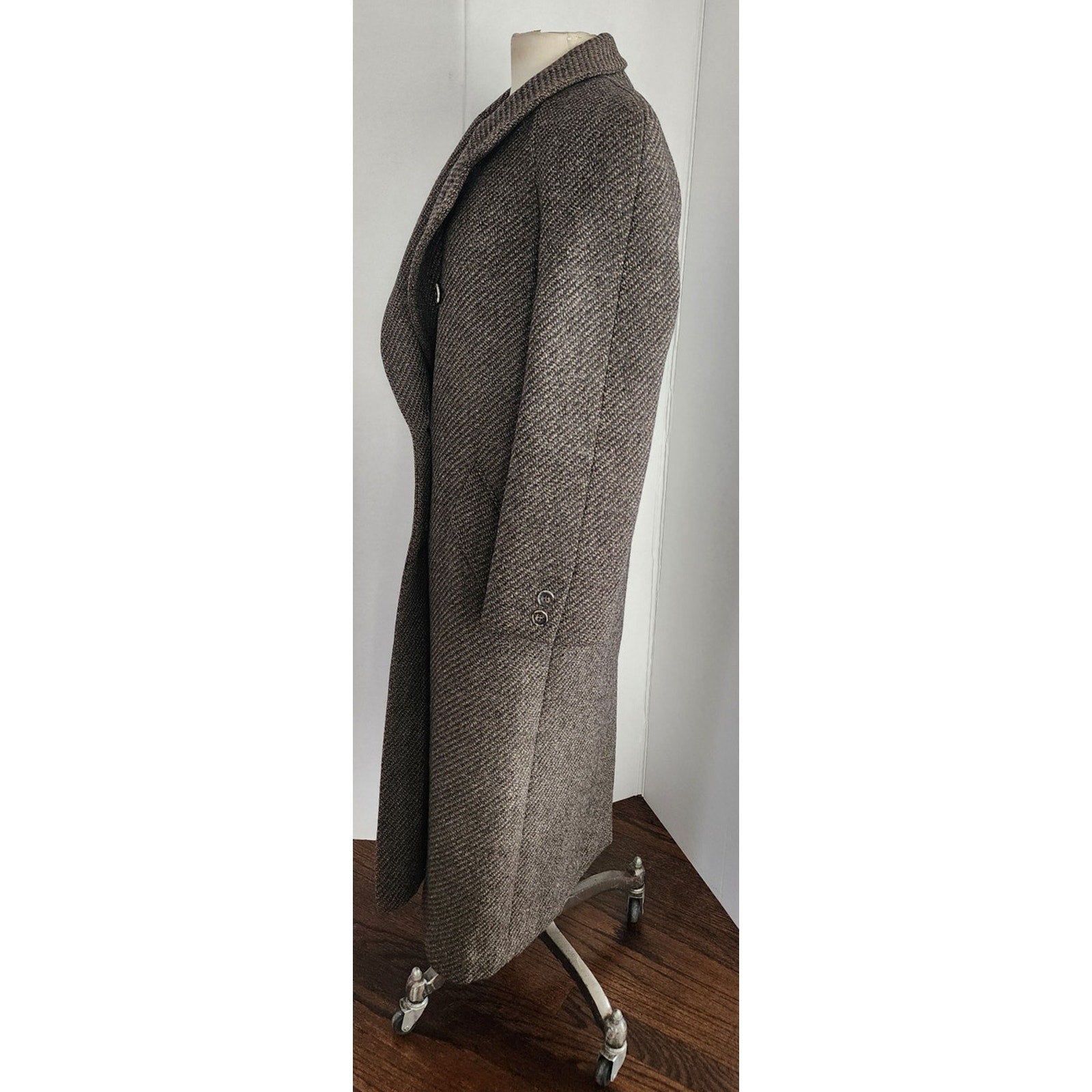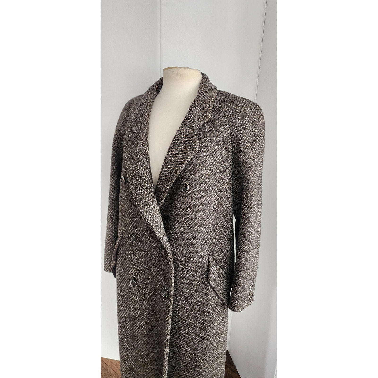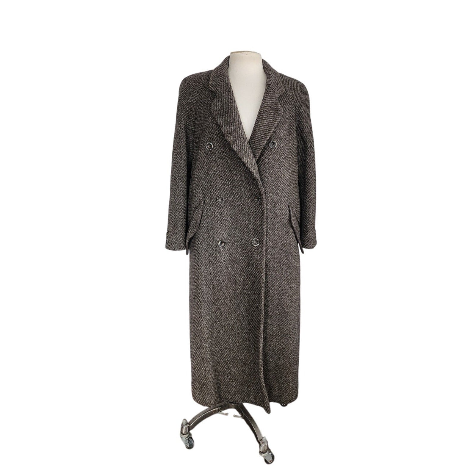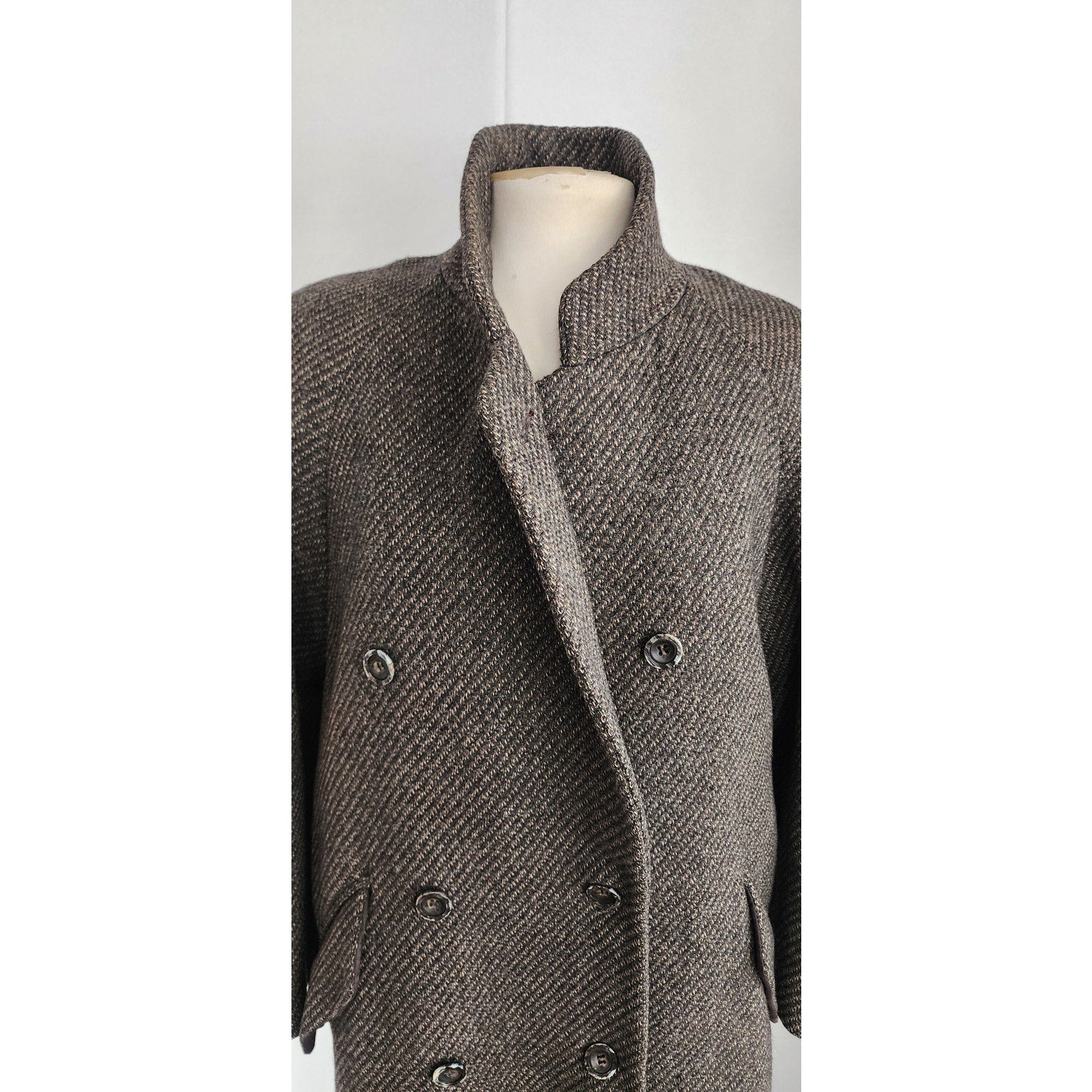 Vintage 80s Coat Gray Wool tweed Double Breasted Harve Benard
