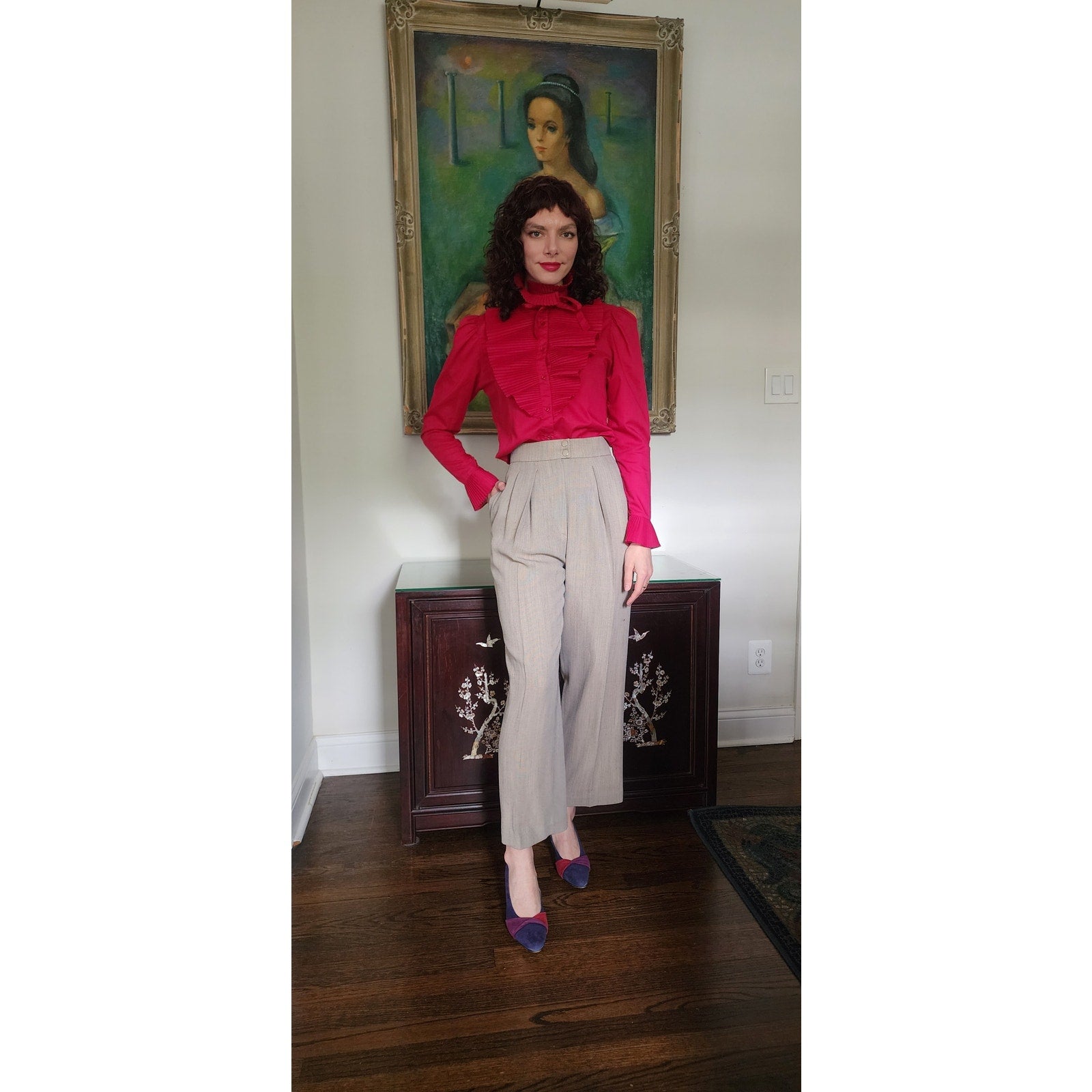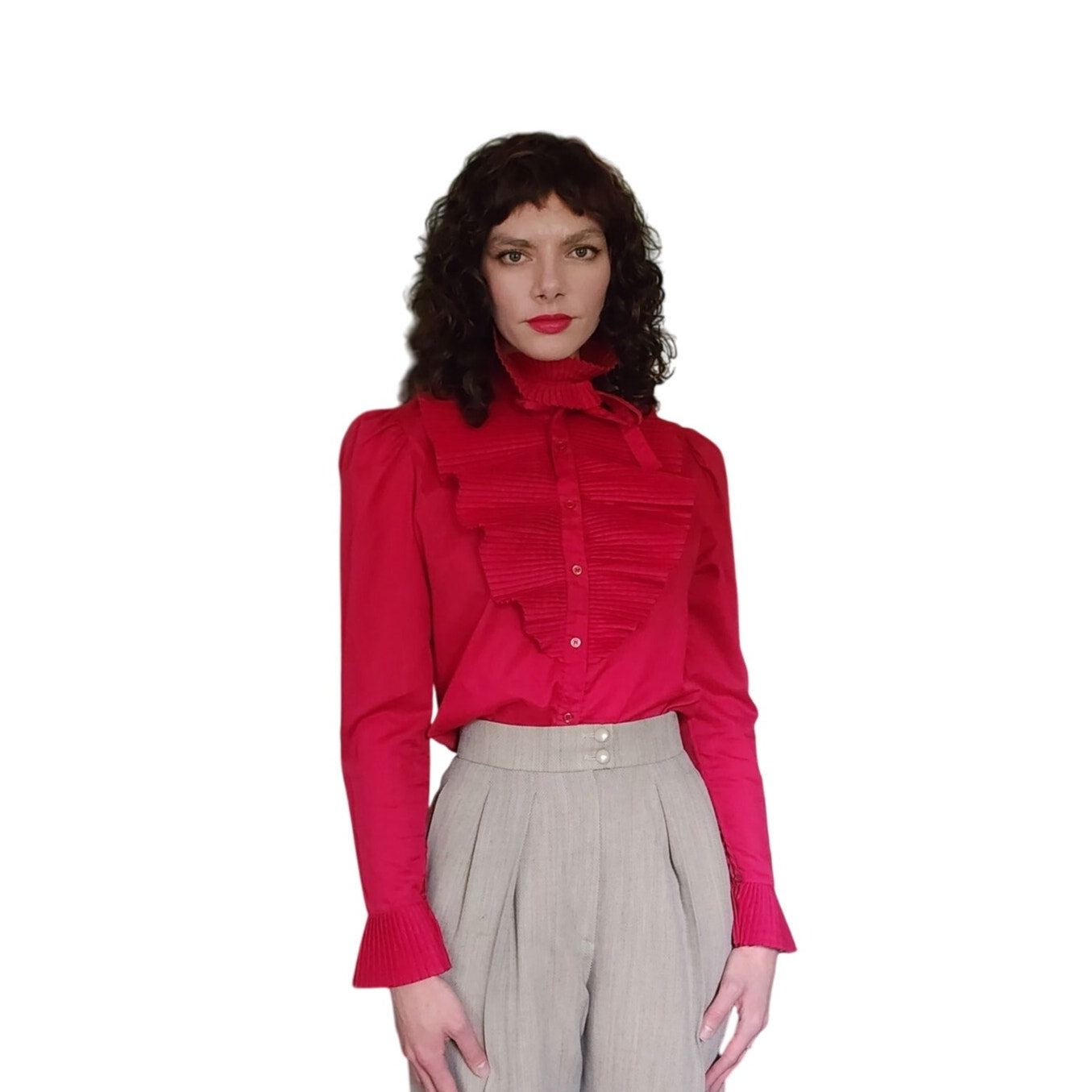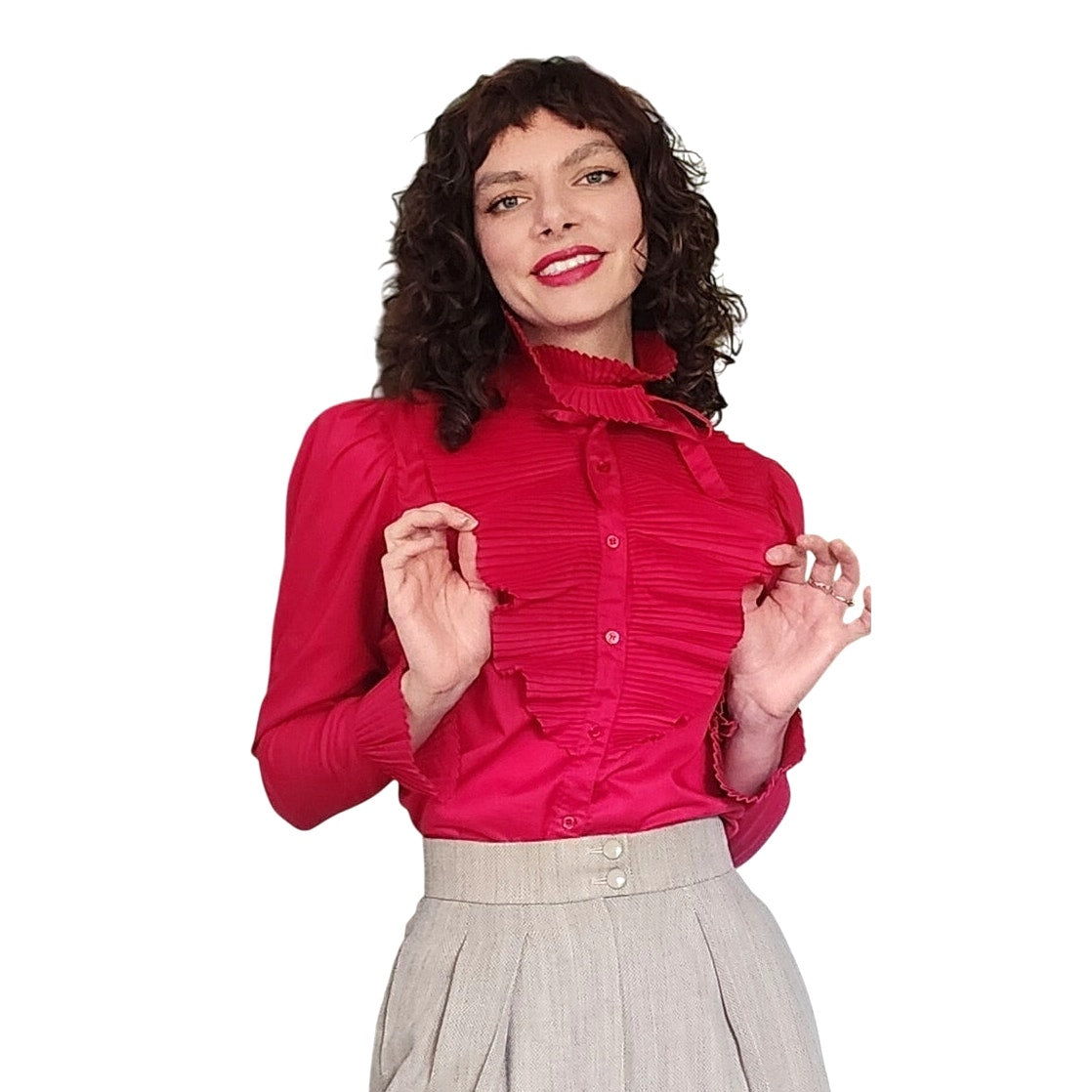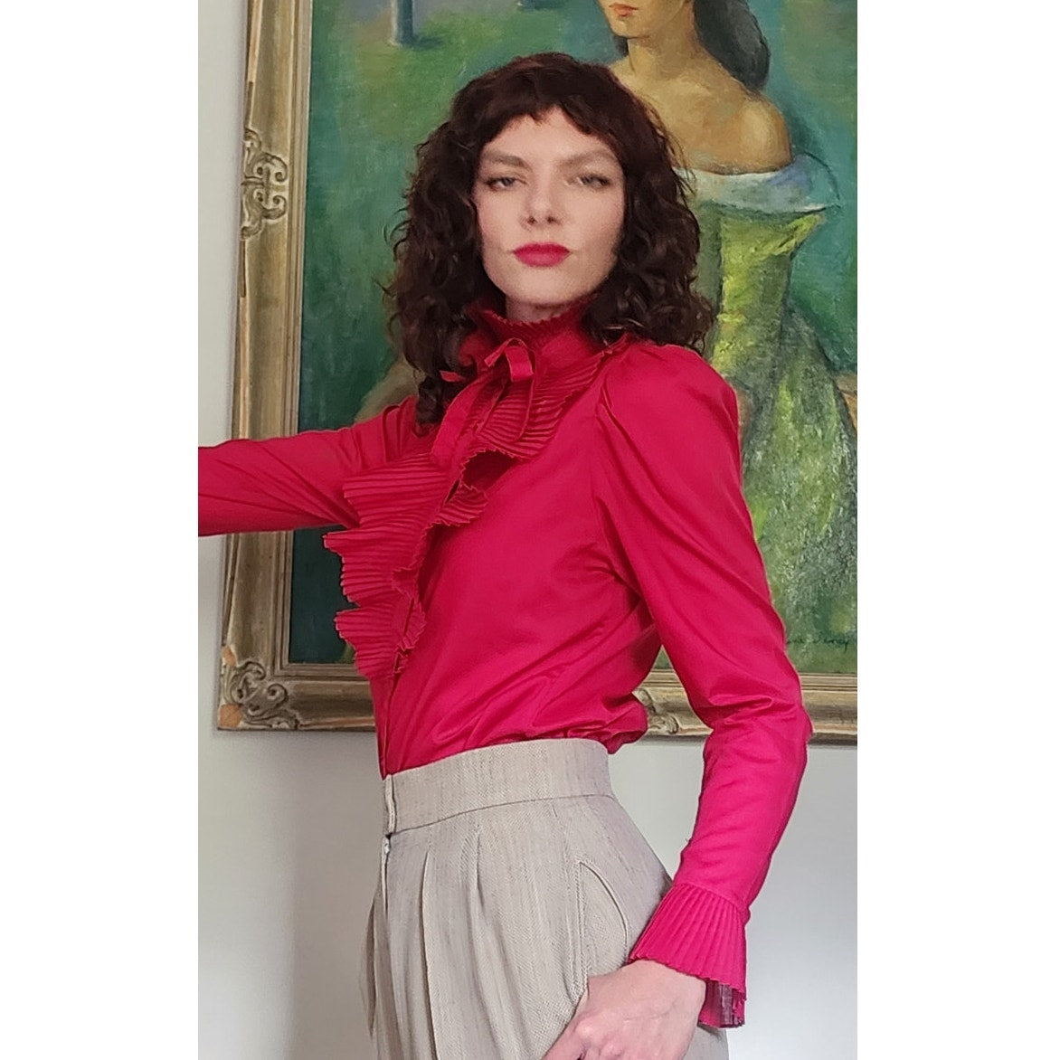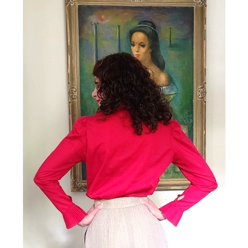 Vintage 80s Fuschia Blouse Ruffled Front Shirt
