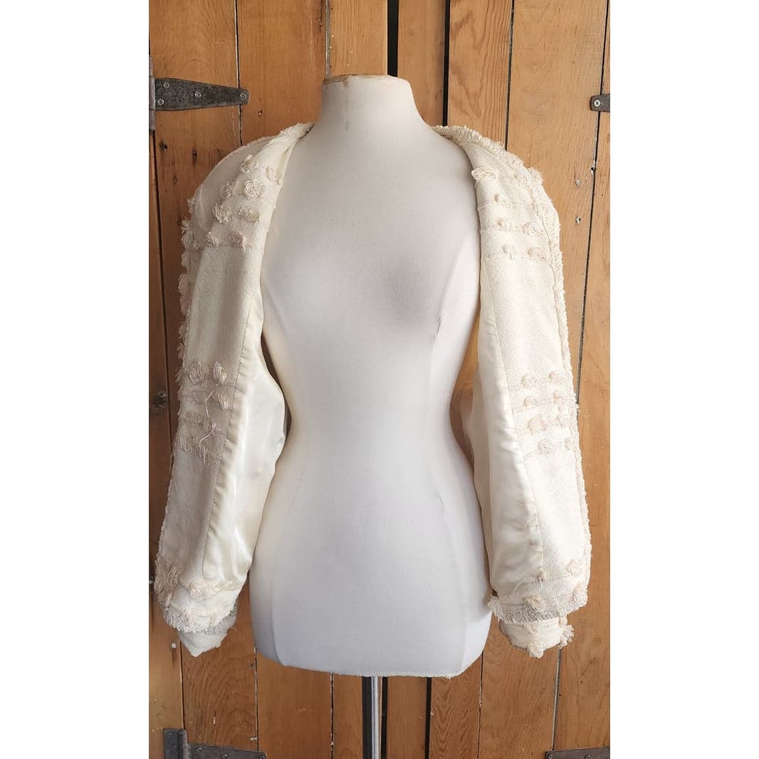 Vintage 80s Cream Jacket White Knit Blazer Textured by Crystal