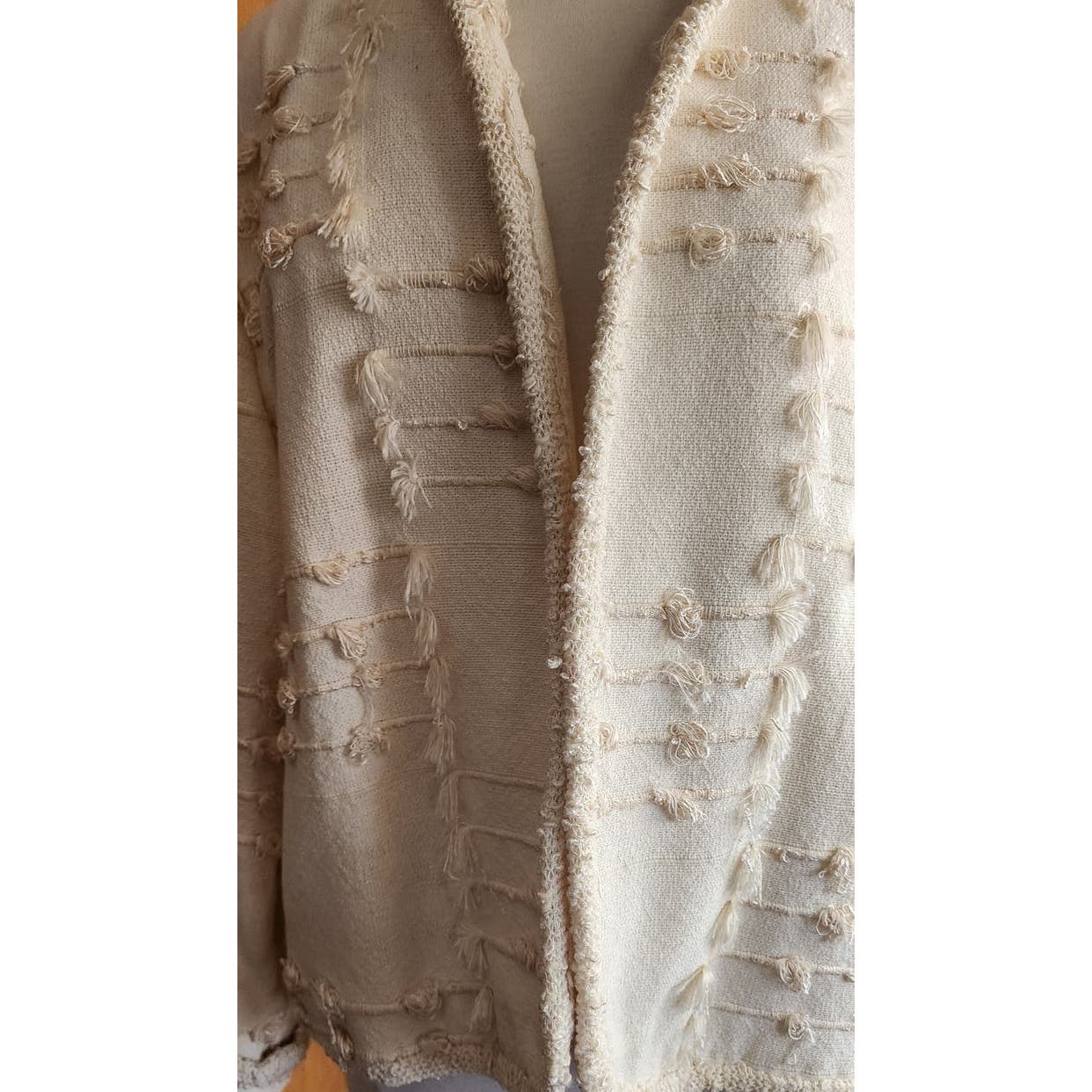 Vintage 80s Handwoven Blazer Cream Textured Cotton by Crystal Wearable Art