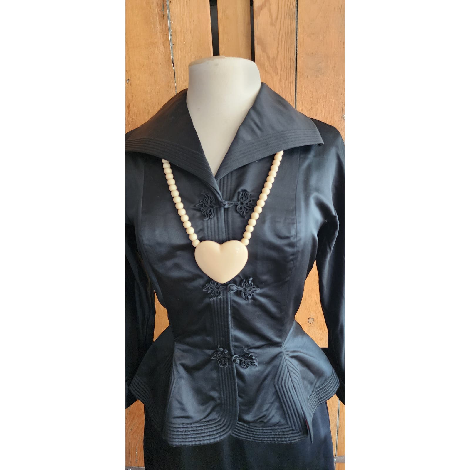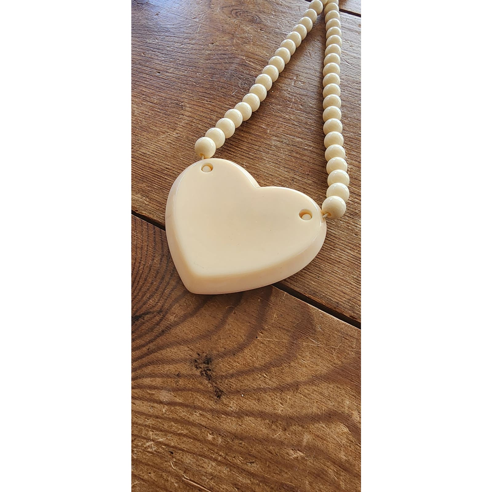Vintage 80s Heart Pendant Necklace Cream Lucite