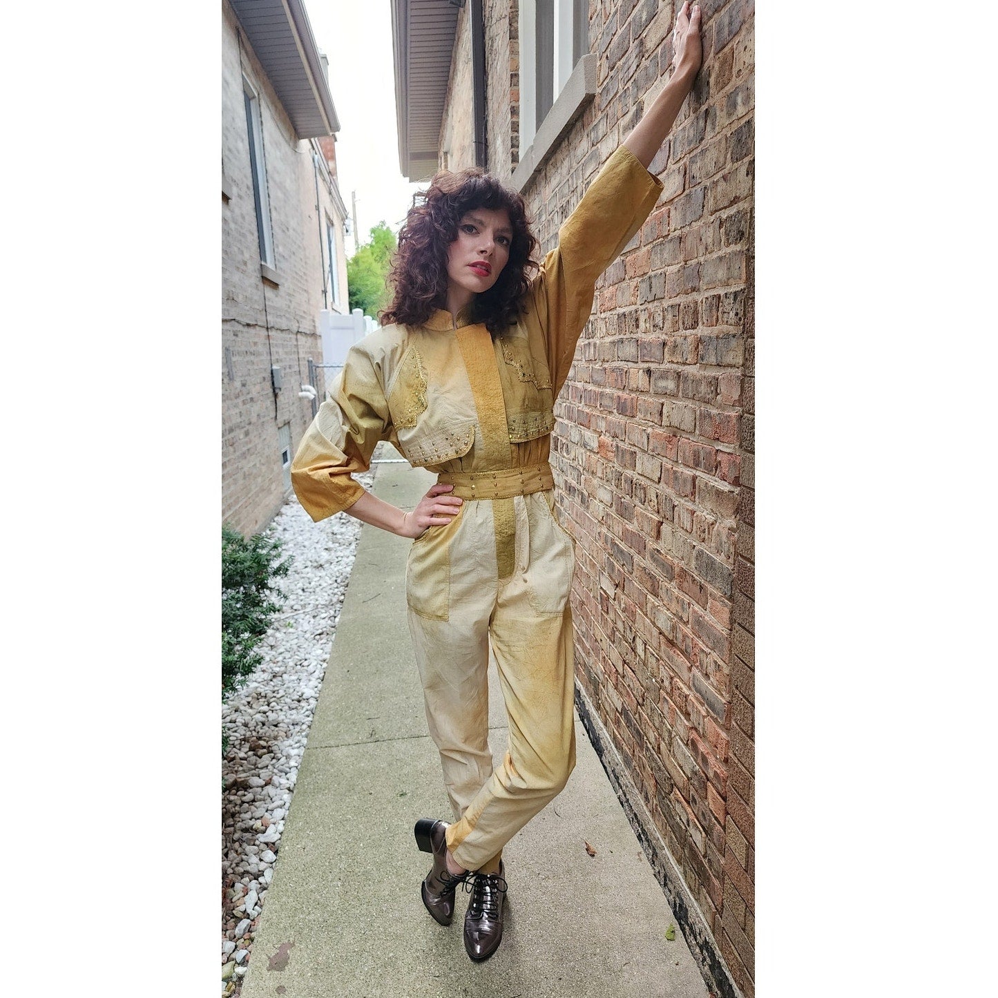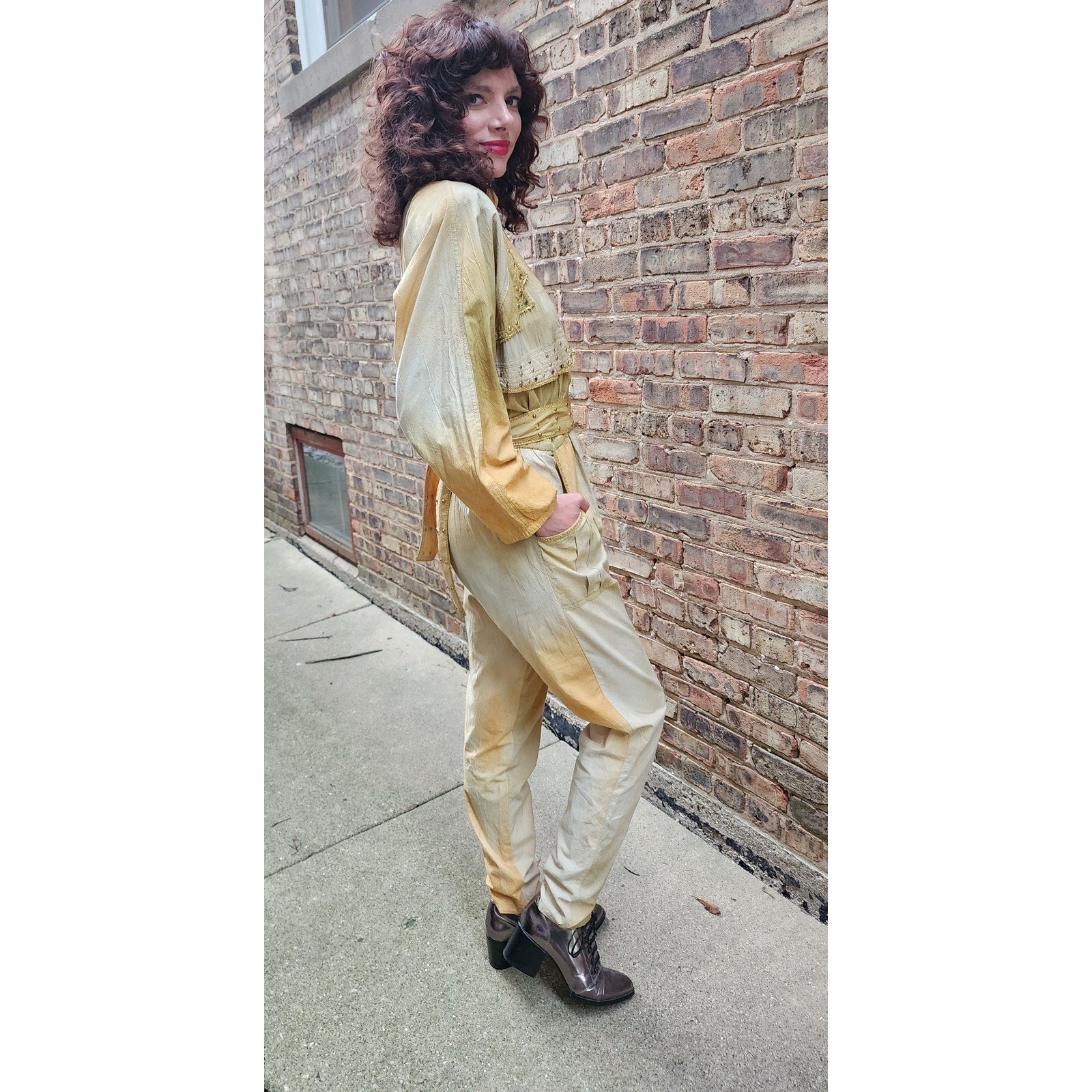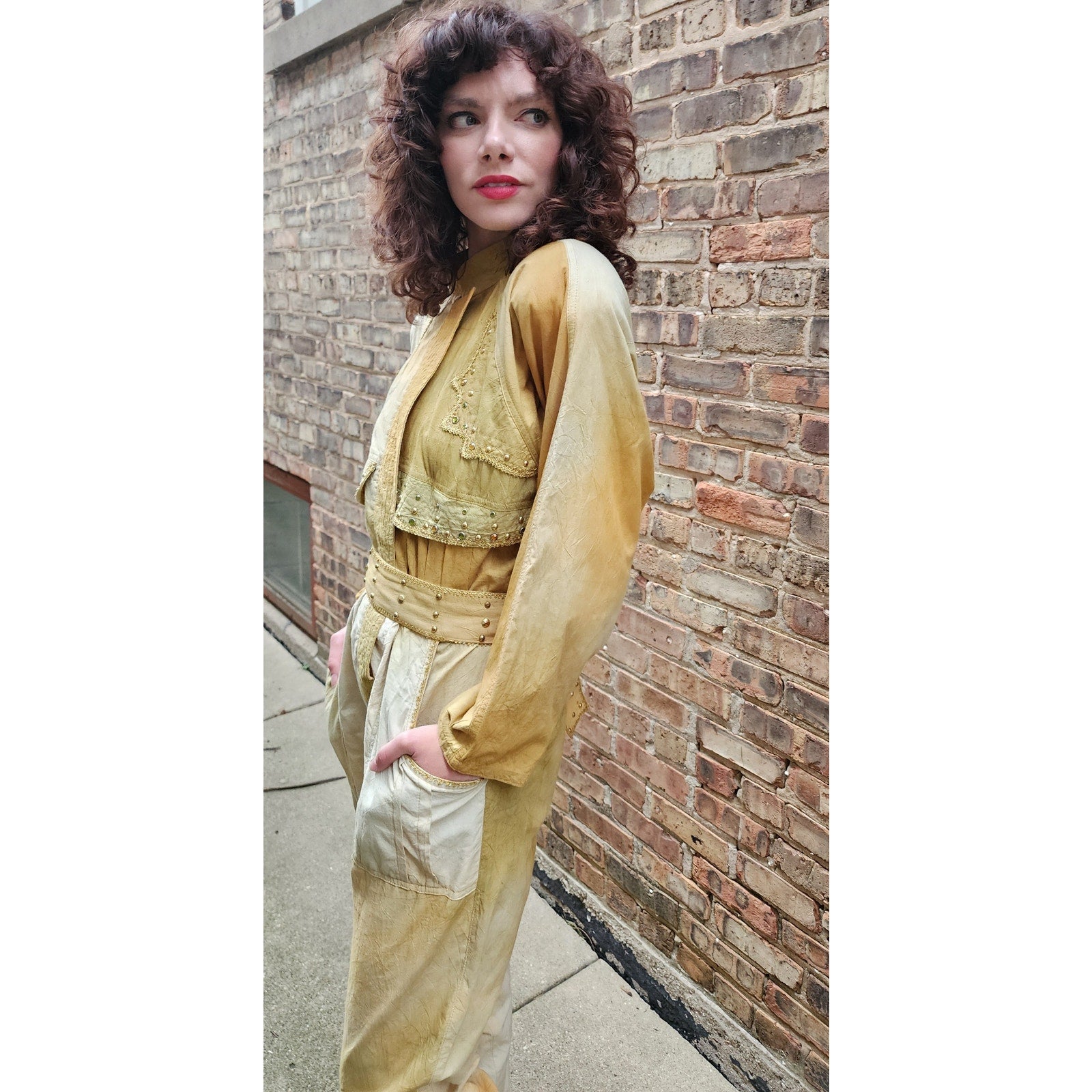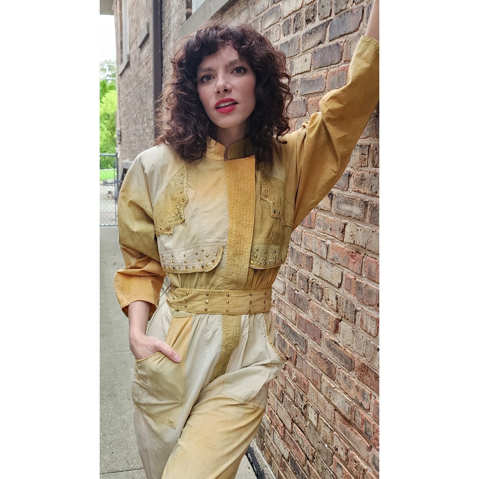 Vintage 80s Jumpsuit Yellow Gold Ombre w/Embroidered Studs Varda Garfinkel