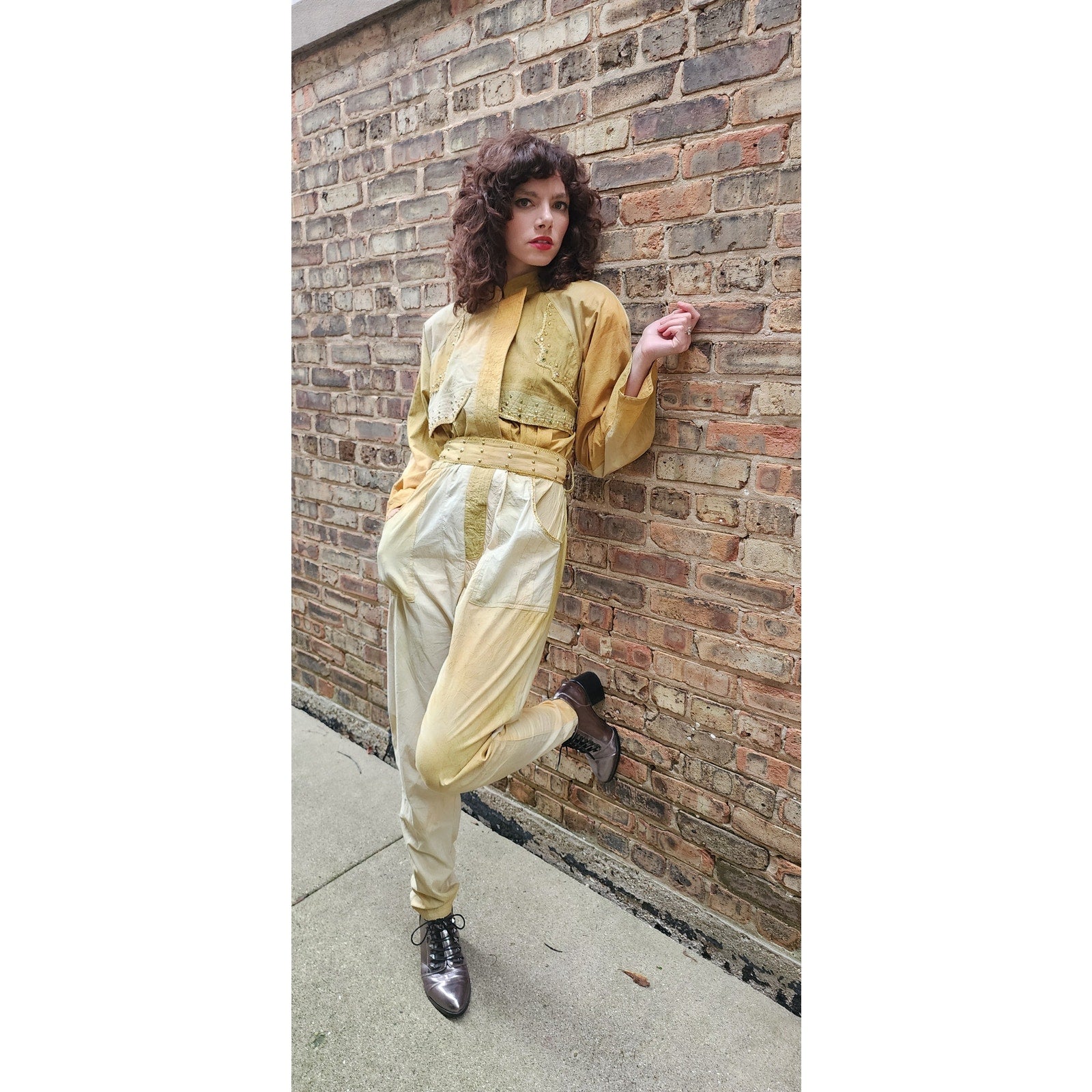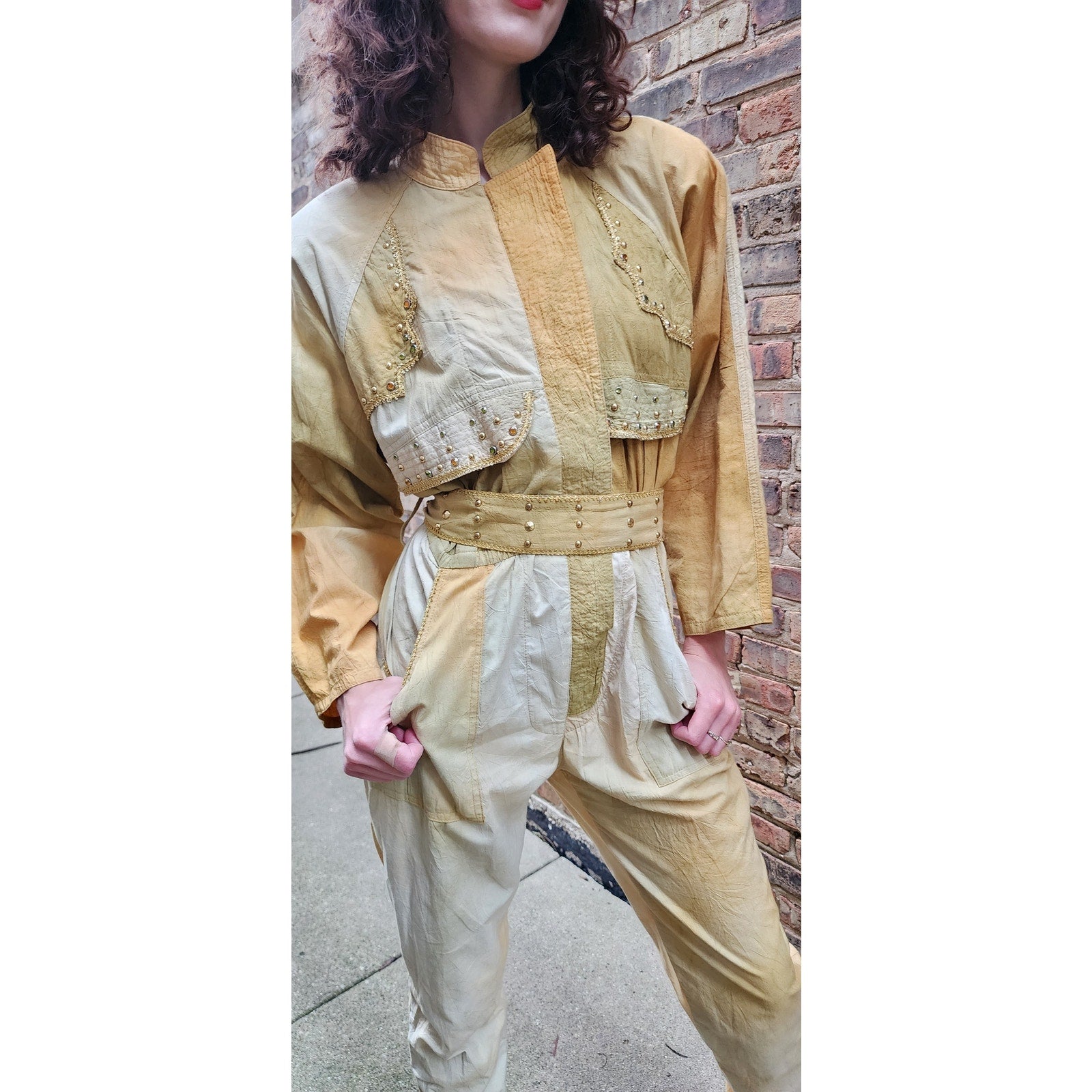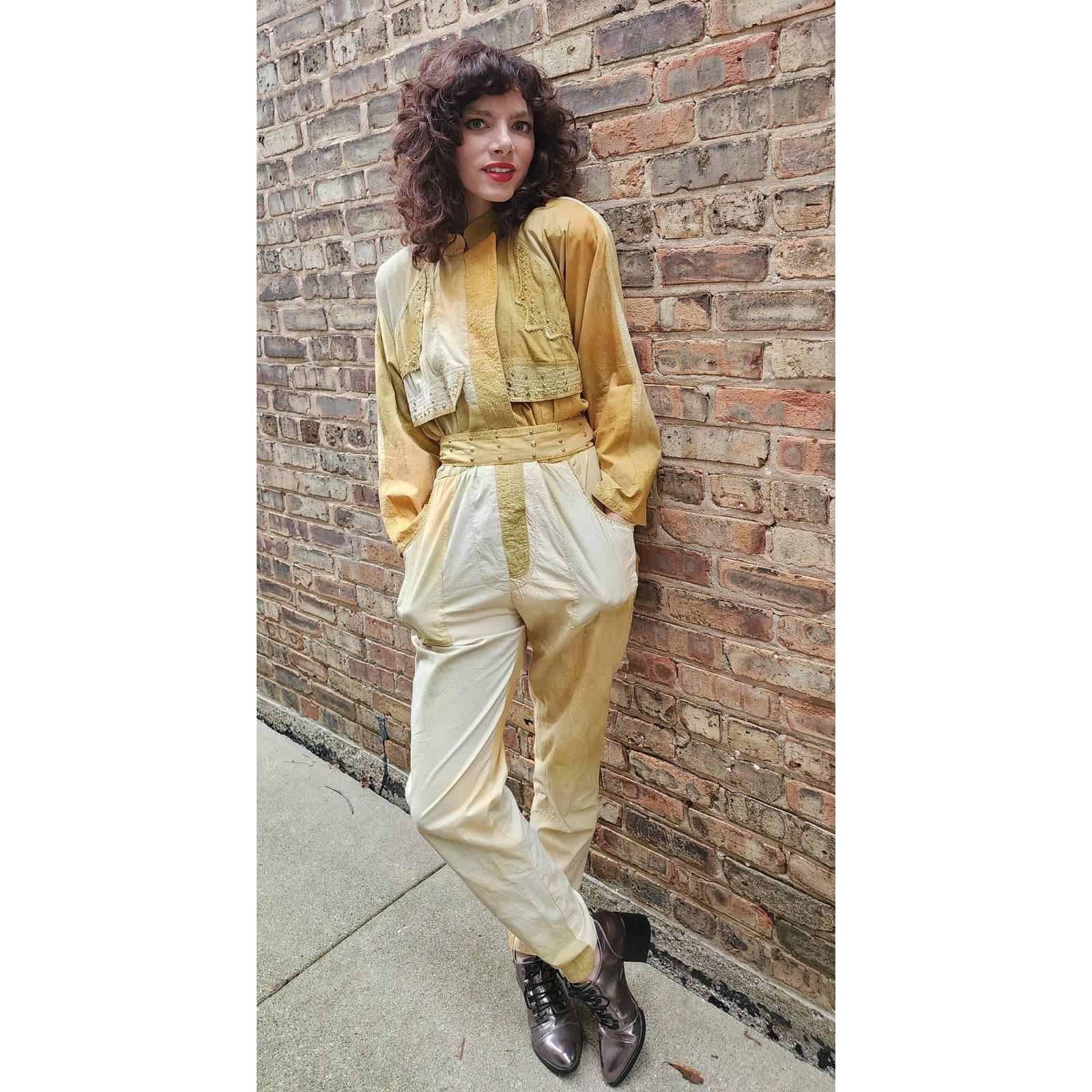 Vintage 80s Jumpsuit Yellow Gold Ombre w/Embroidered Studs Varda Garfinkel