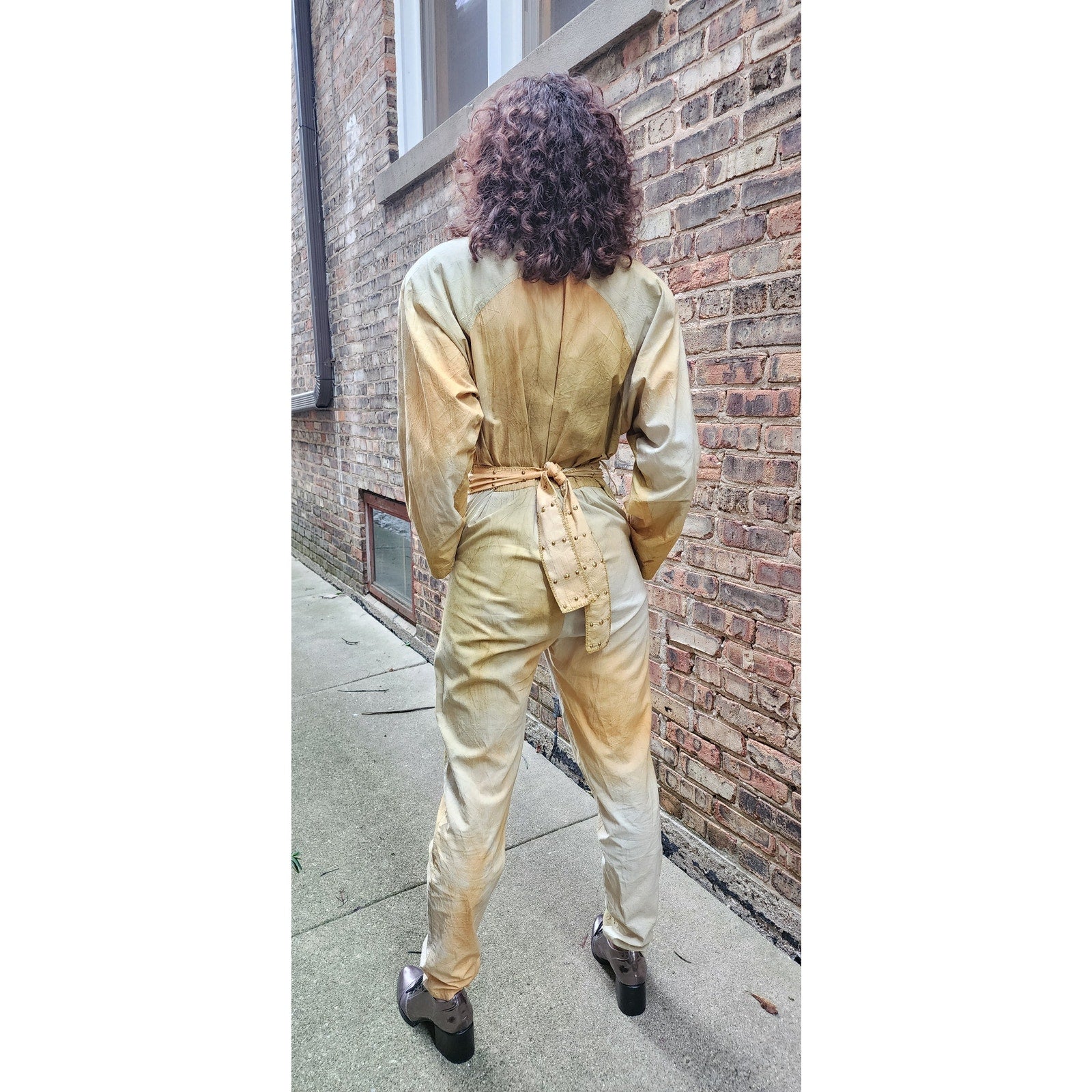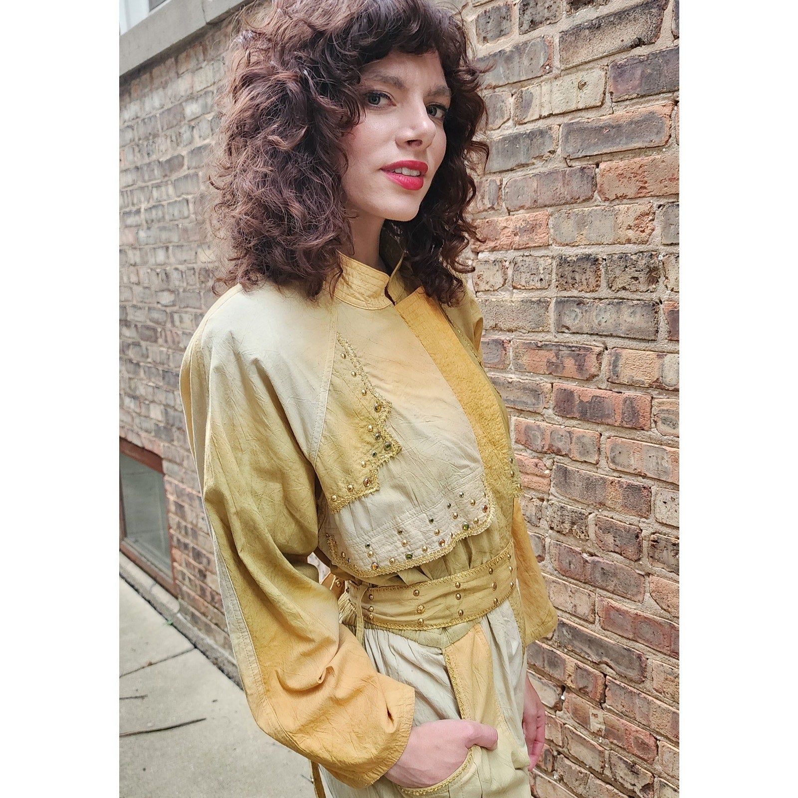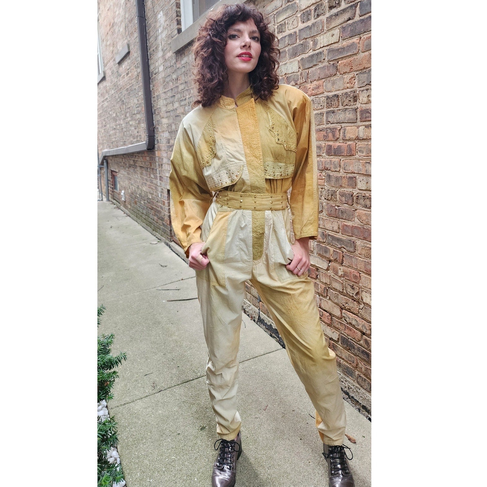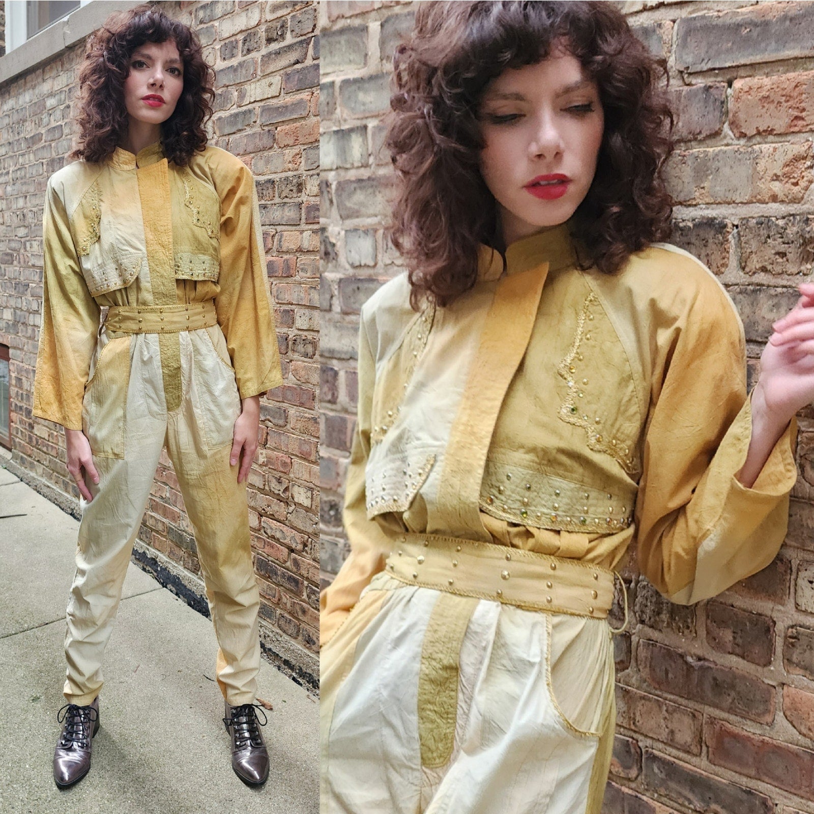 Vintage 80s Jumpsuit Yellow Gold Ombre w/Embroidered Studs Varda Garfinkel