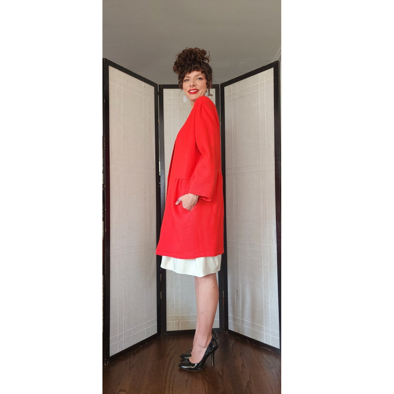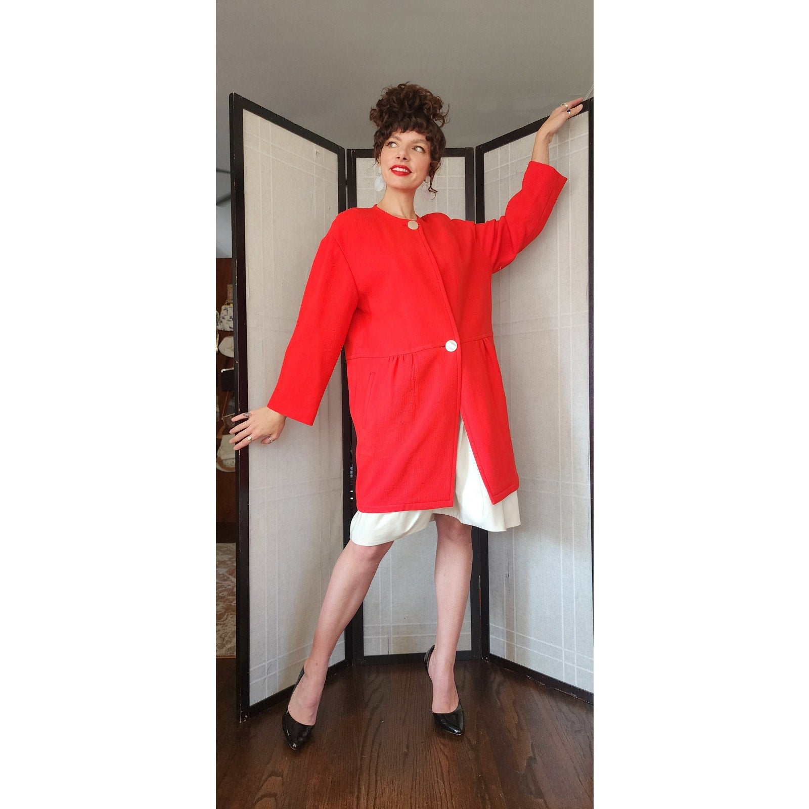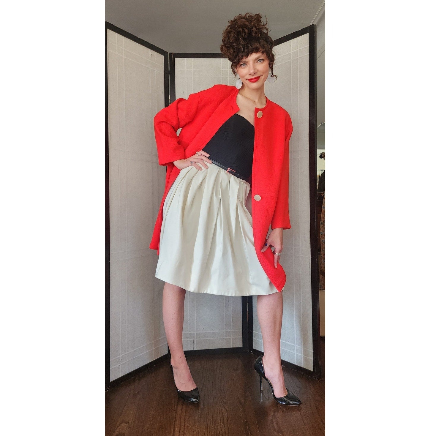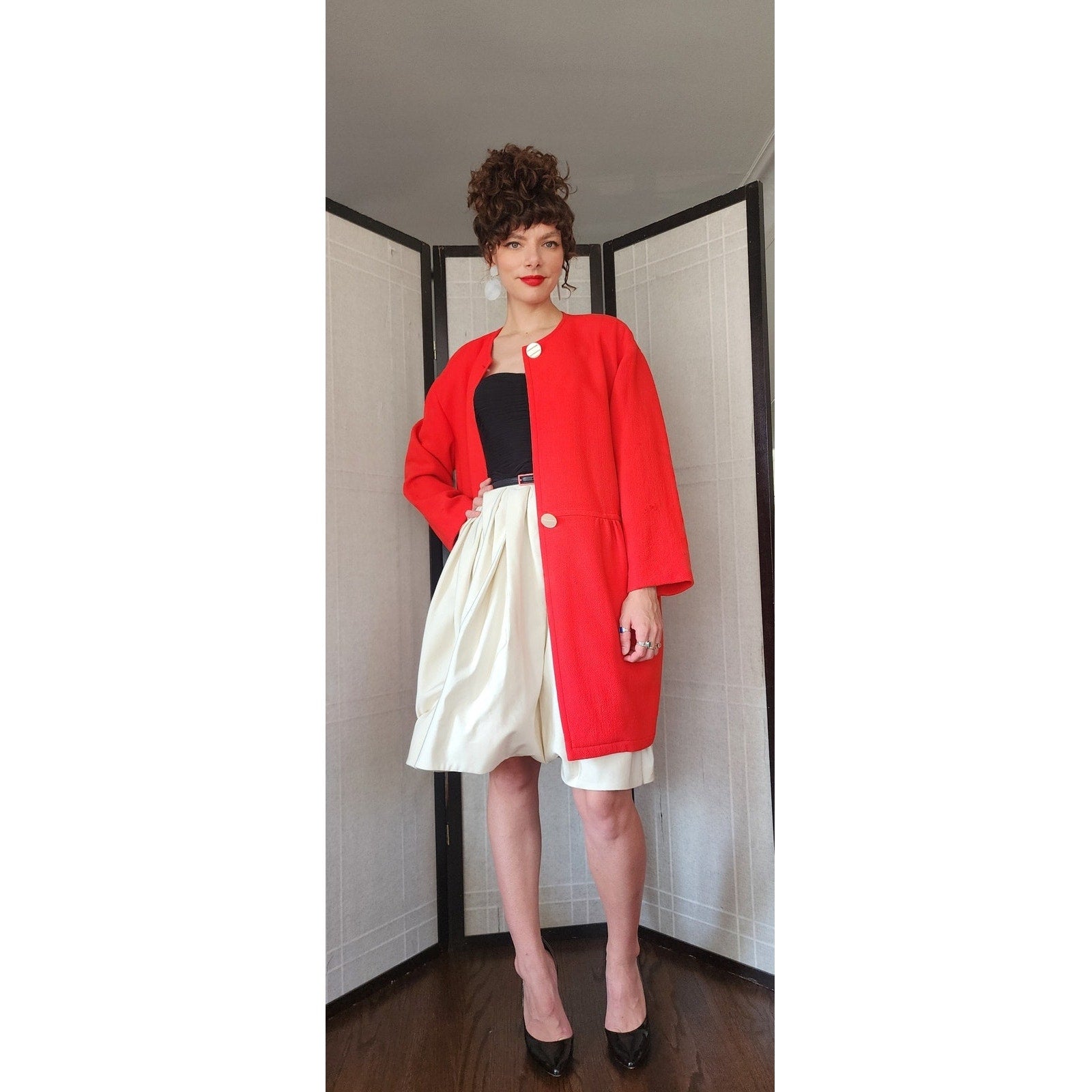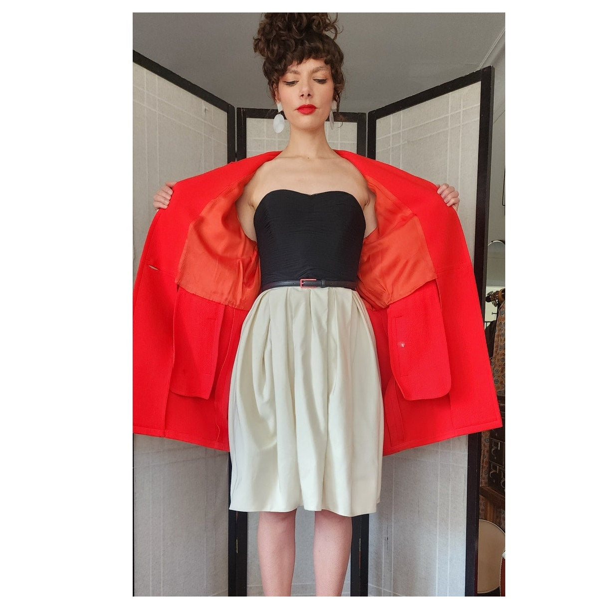 Vintage 80s LANVIN Red Coat Jacket w/White Buttons