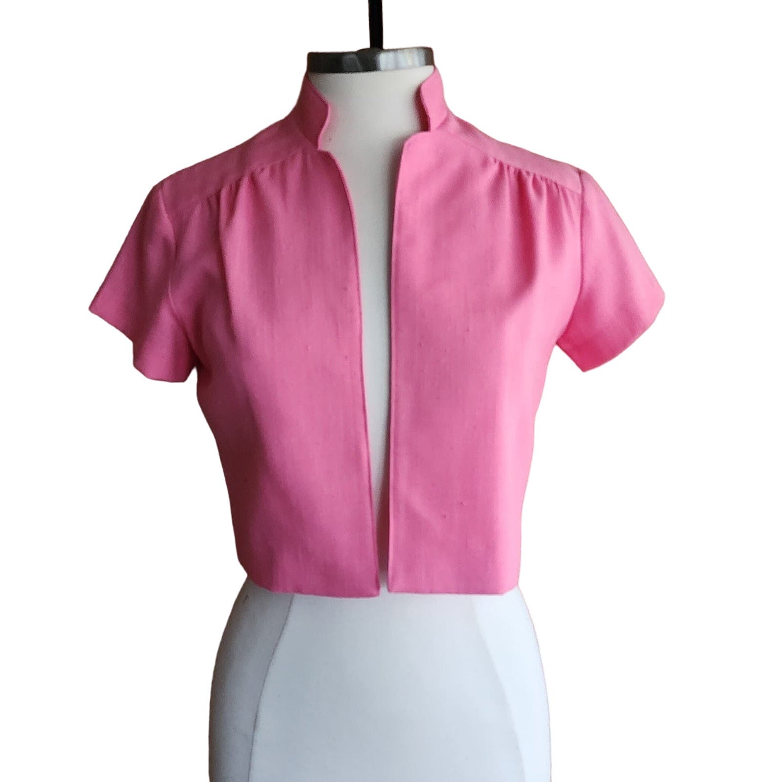Vintage 80s Pink Cropped Jacket Lanz Short Sleeved