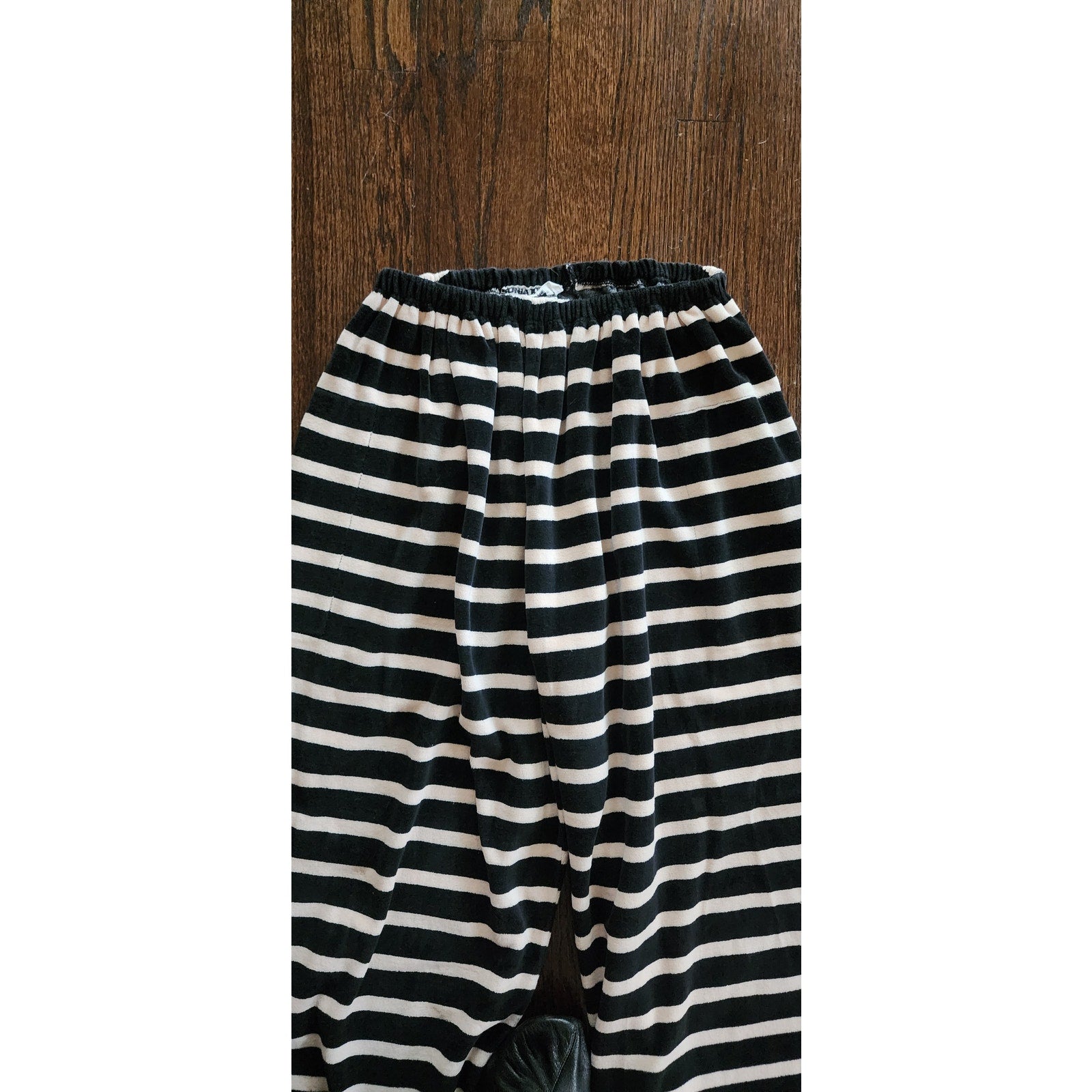 Vintage 80s Sonia Rykiel Pants Black w/Cream Stripes Velour Elastic Waist