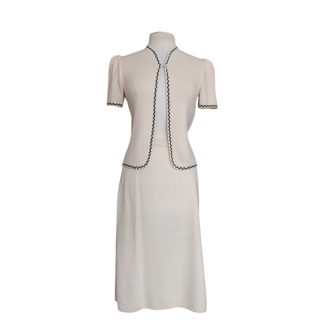 Vintage 80s St. John for Marshall Fields Cream & Black Knit Suit Skirt Jacket