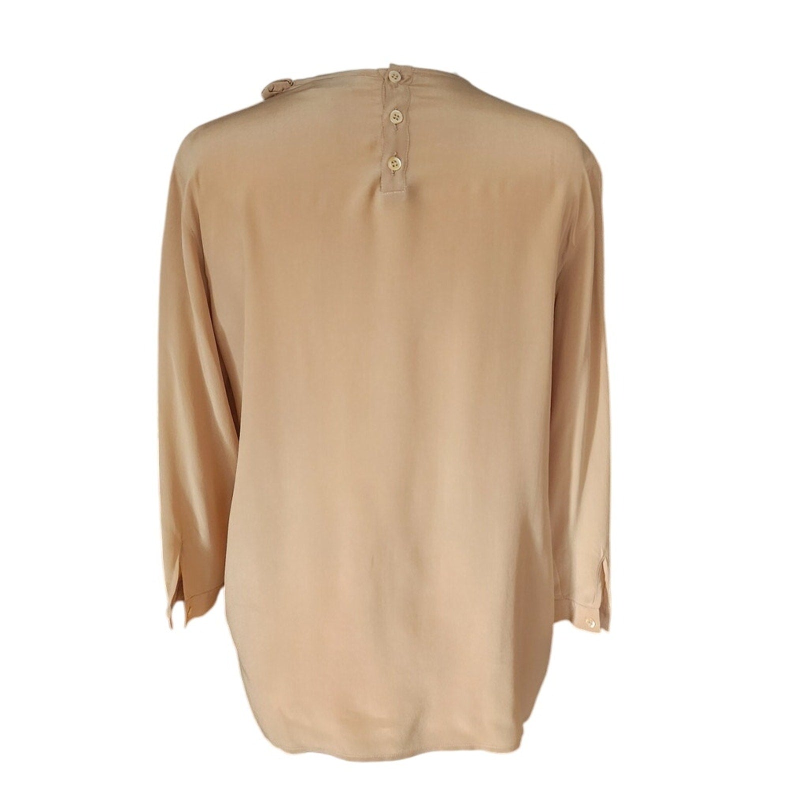 Vintage 90s Beige Silk Blouse w/Scarf Panel Armani Collezioni / M