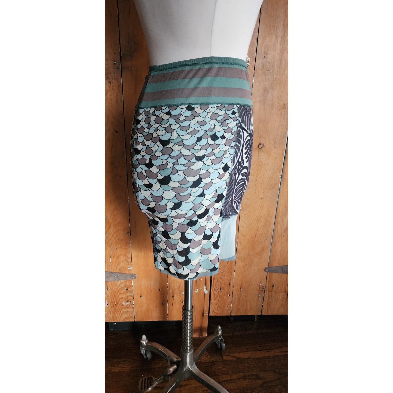 Vintage 90s Gaultier Skirt Stretchy Blue Graphic Print