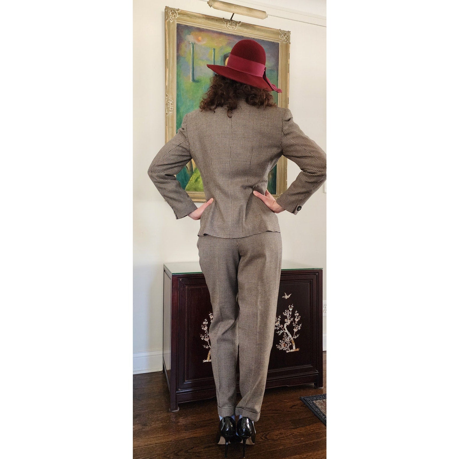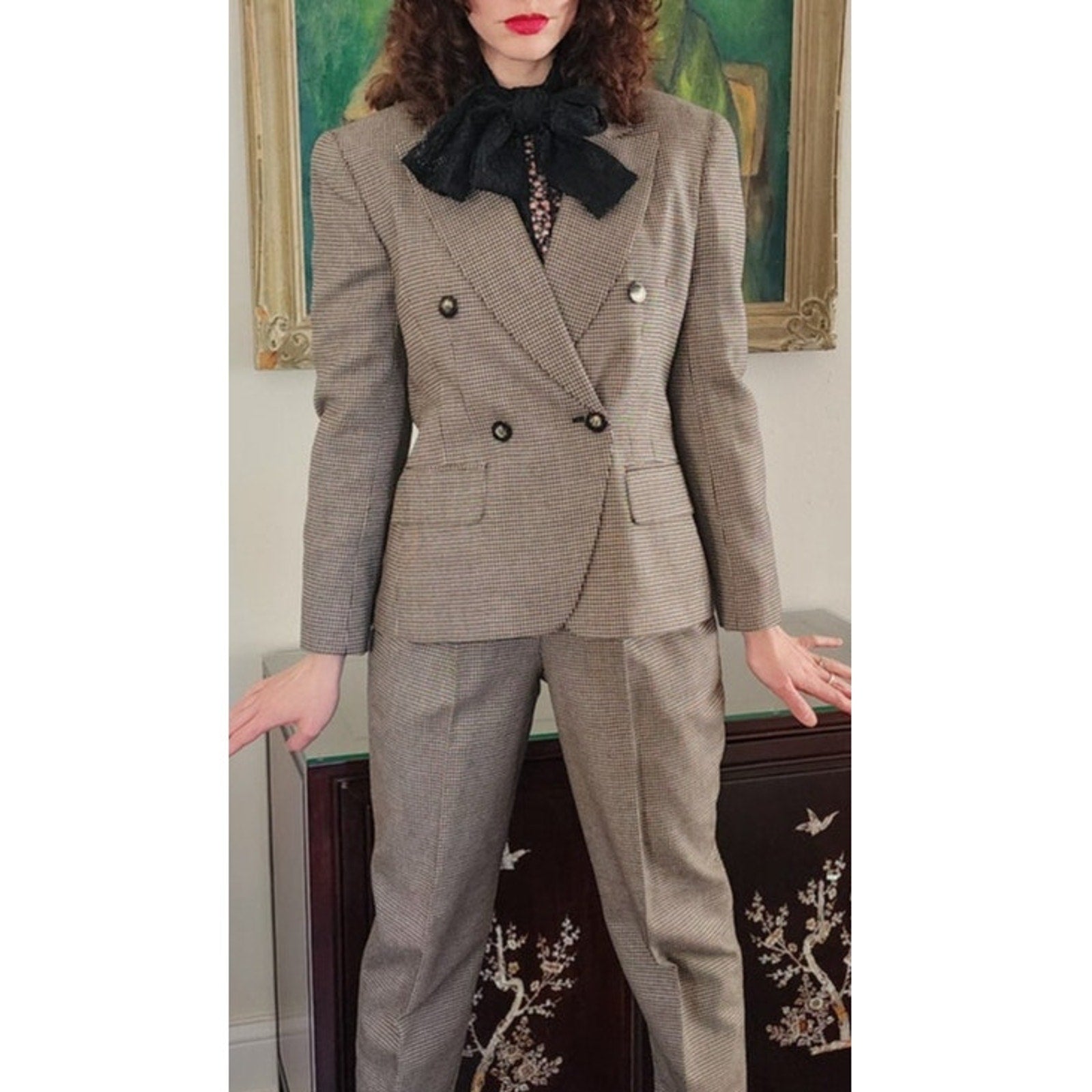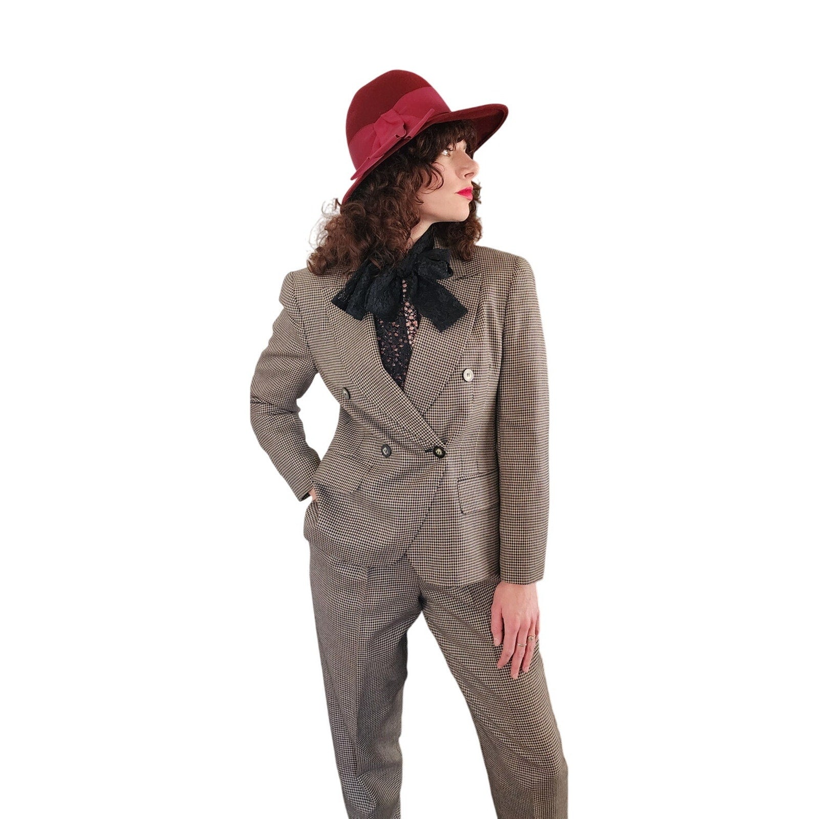 Vintage 90s Pant Suit Houndstooth Wool Jones New York / S
