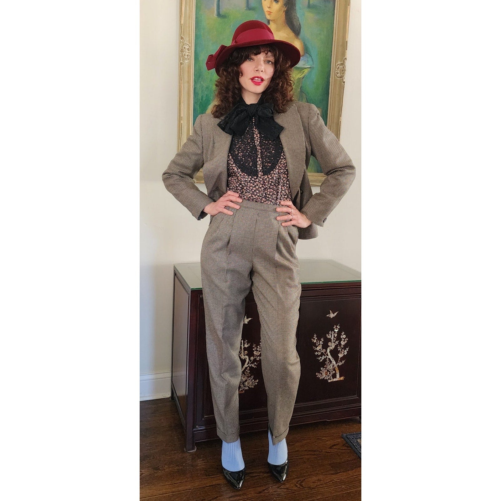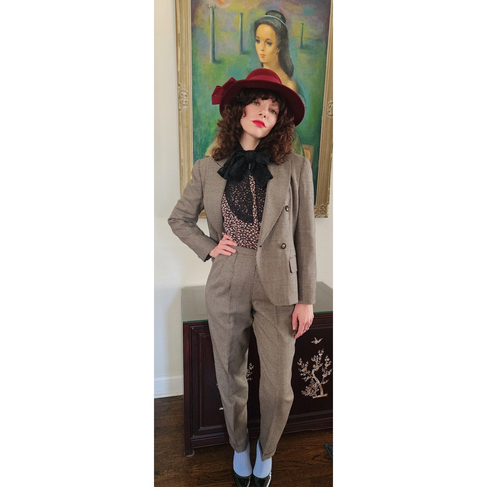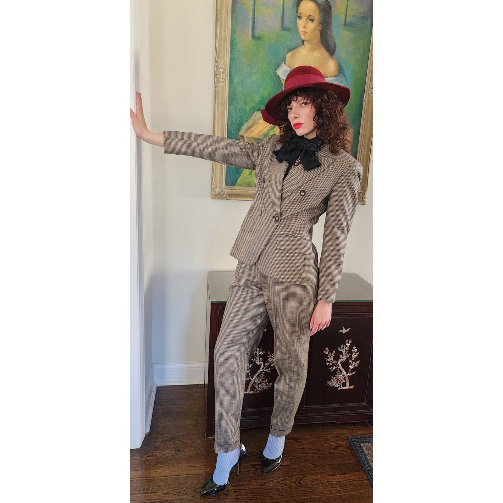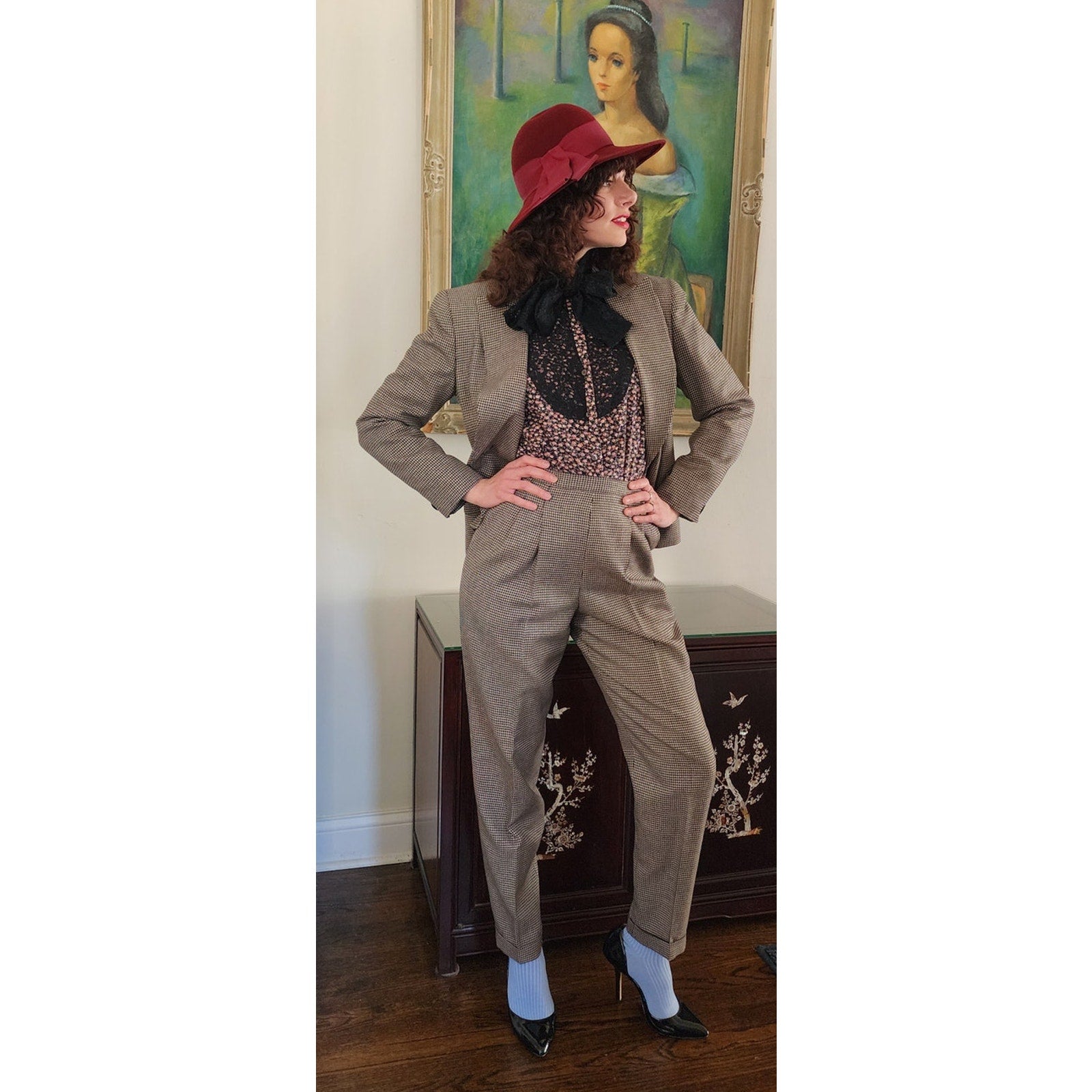 Vintage 90s Pant Suit Houndstooth Wool Jones New York / S