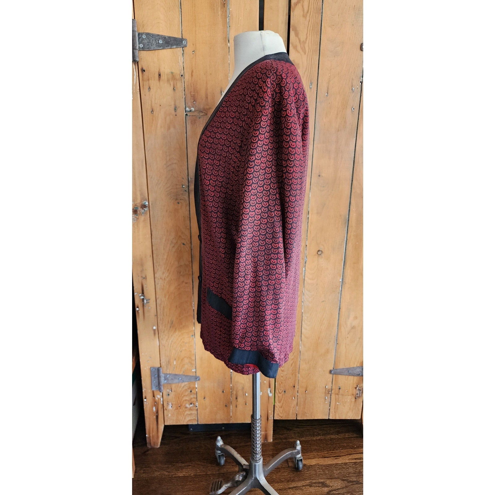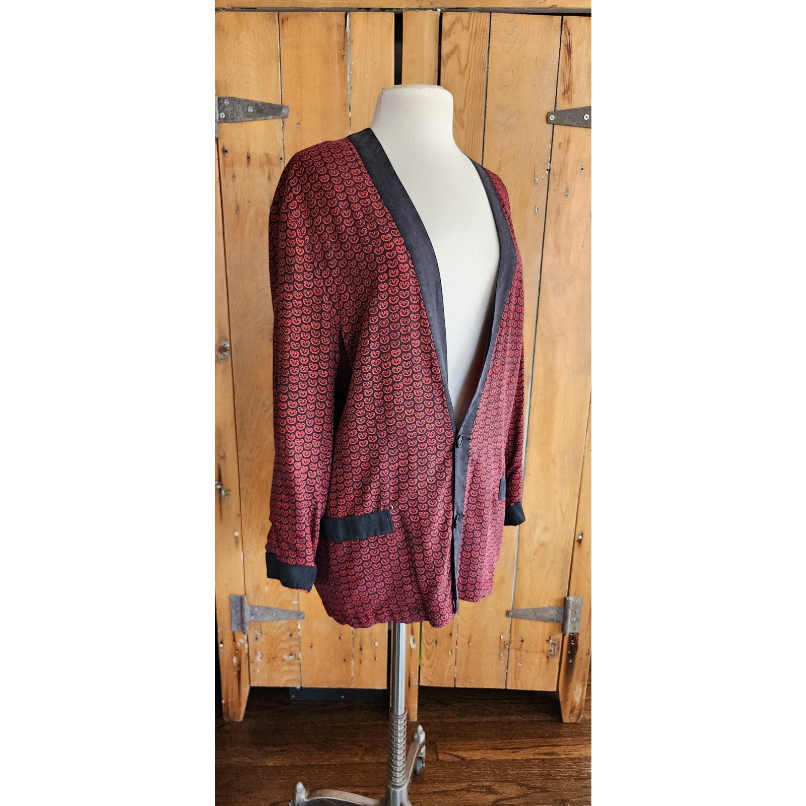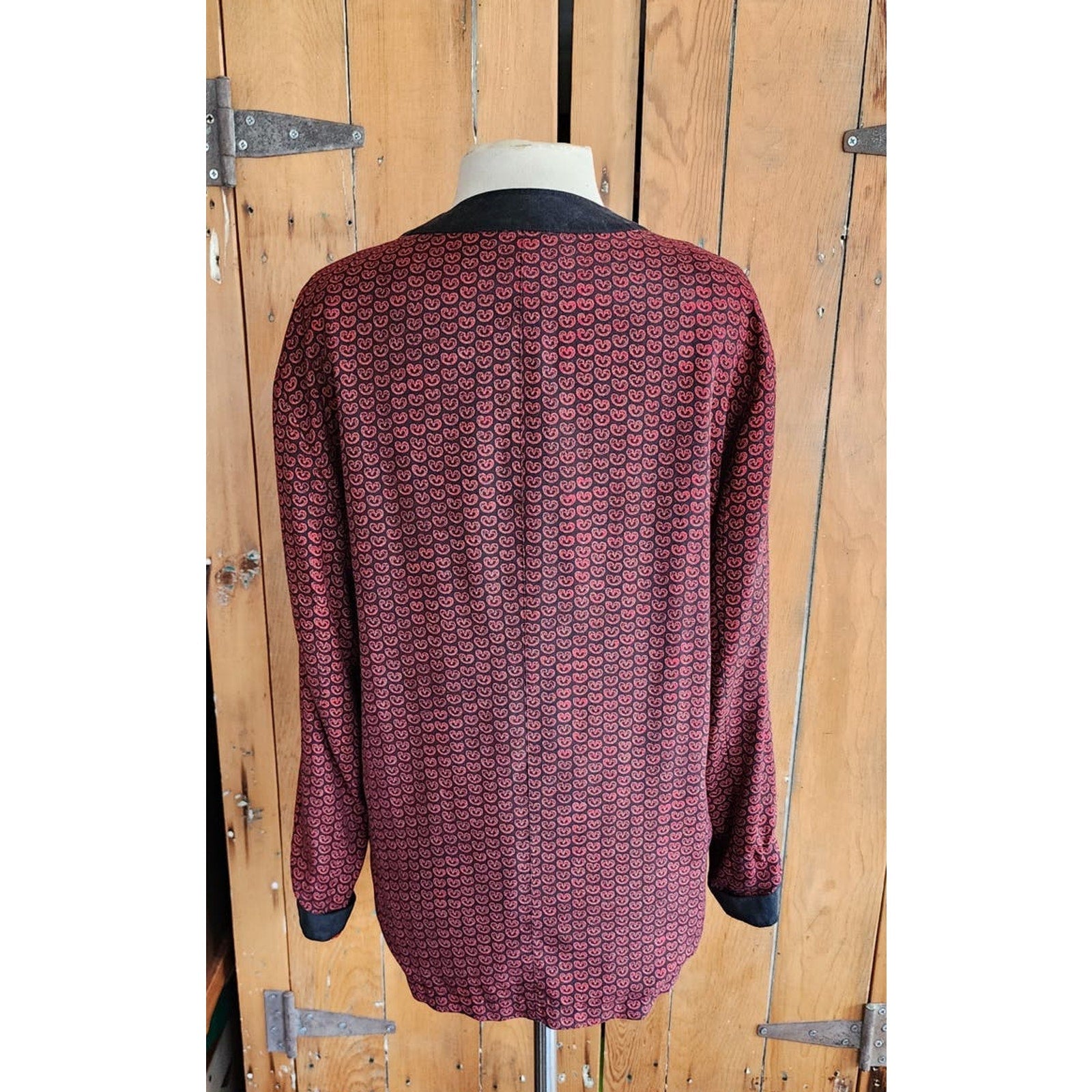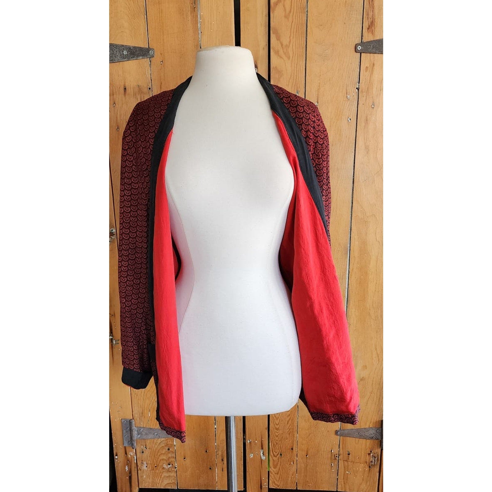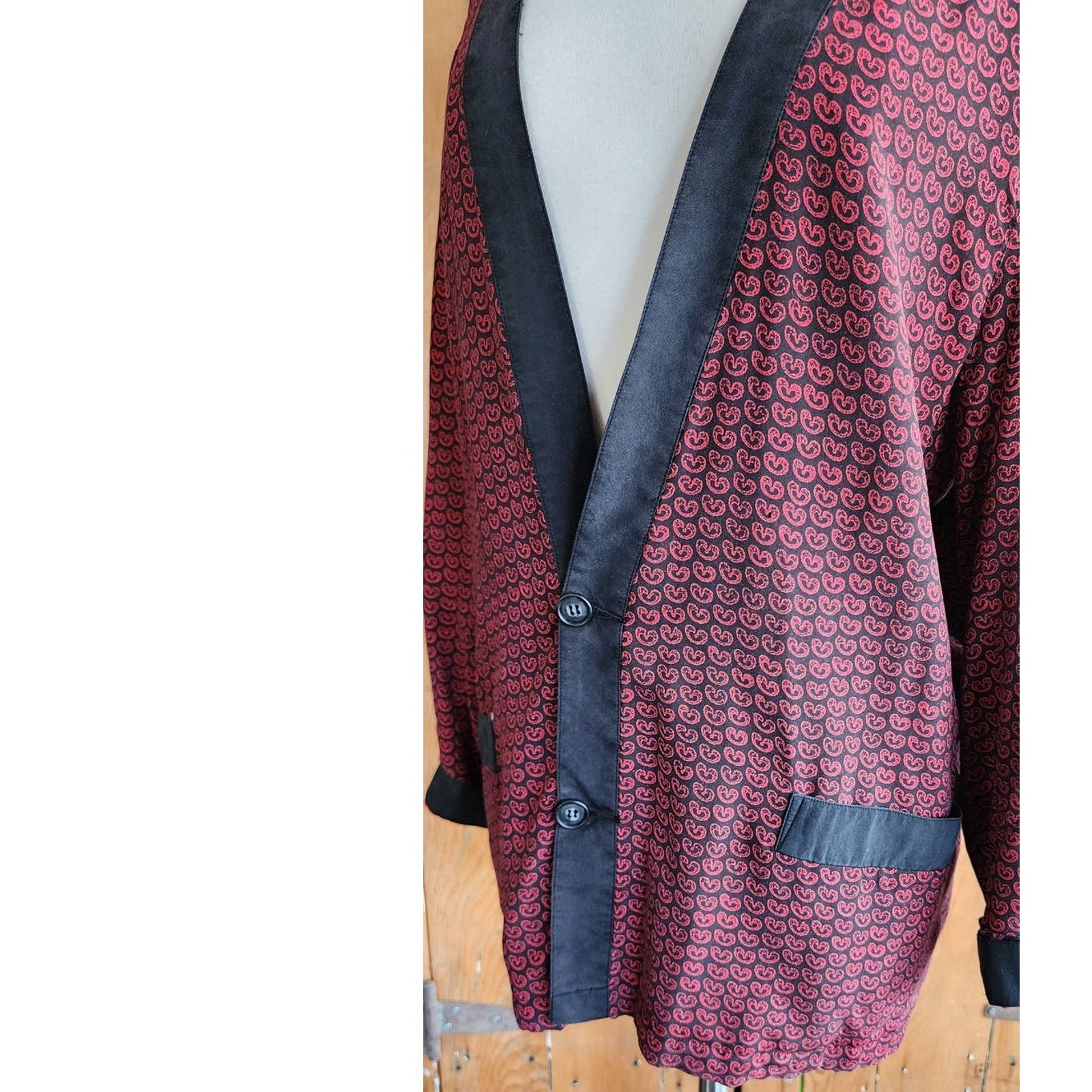 Vintage 90s Red Silk Jacket Printed Blazer by GoSilk / M