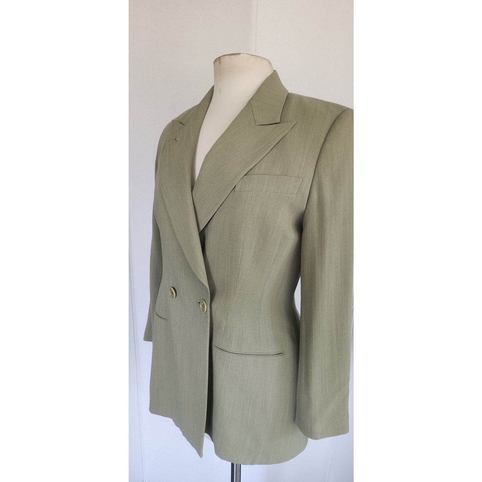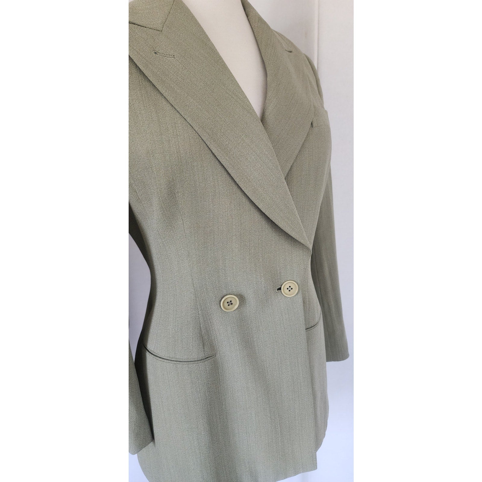 Vintage 90s Richard Tyler Pant Suit Green Wool Silk Blend / Small