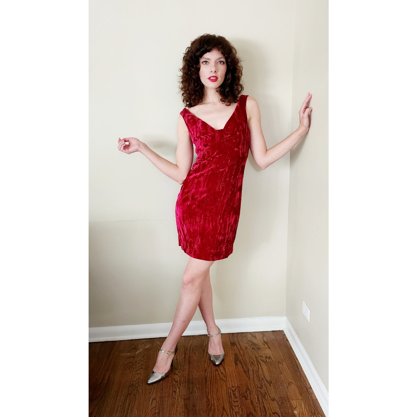 Vintage 90s Velvet Party Dress Burgundy Red Contempo Casuals
