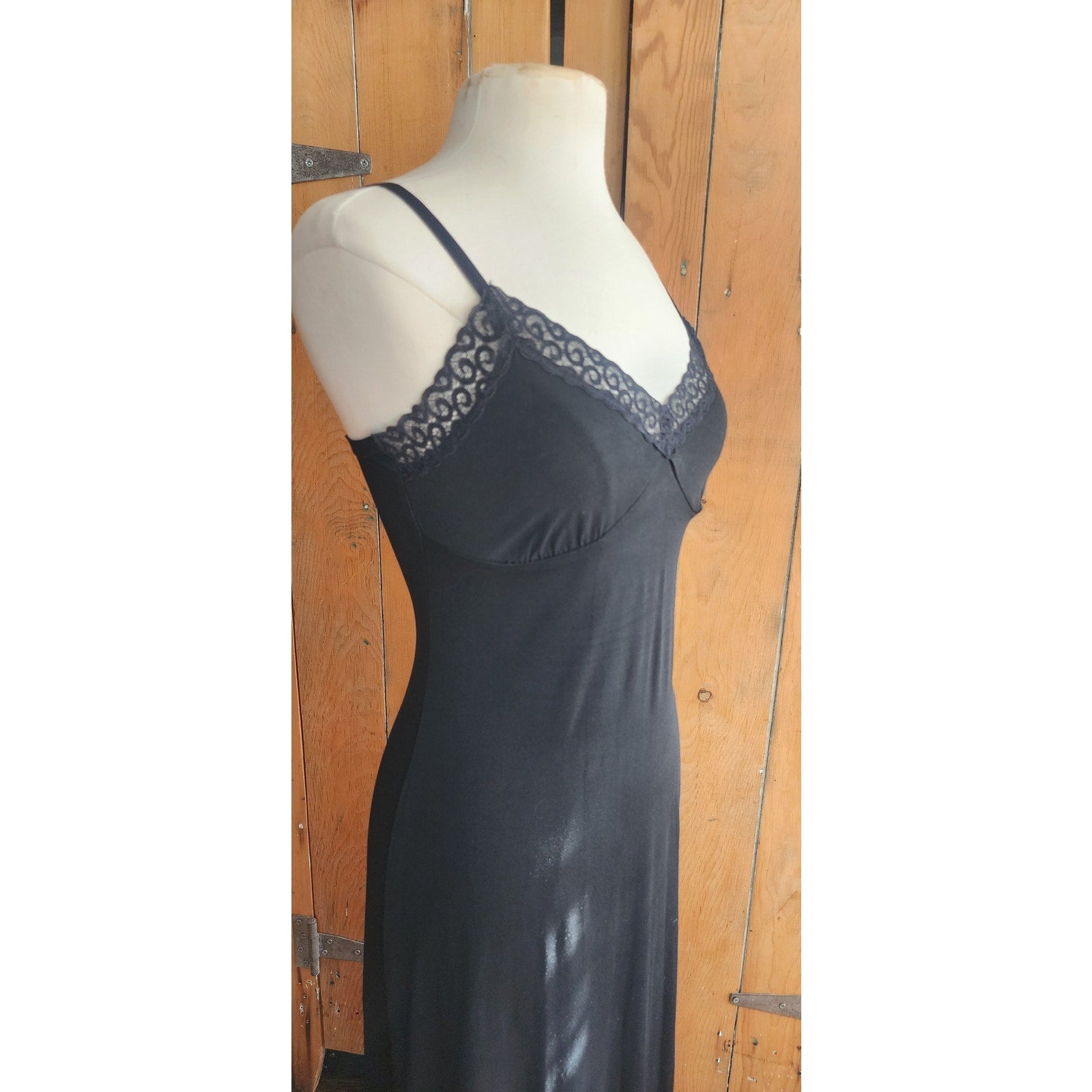 Vintage Black Negligee Slip Dress Lace Trim Spaghetti Straps / M