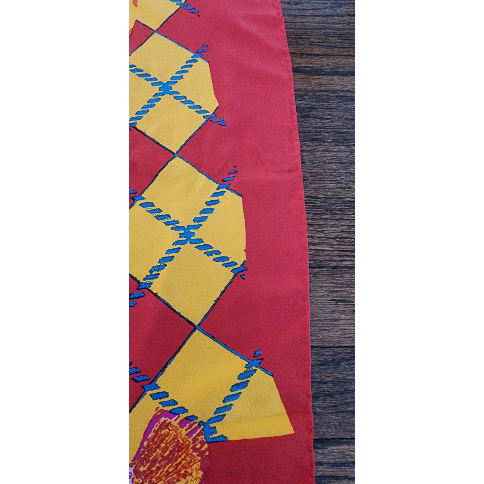 Vintage Emanuel Ungaro Silk Scarf Red Yellow Floral Argyle Print Square Made In Italy