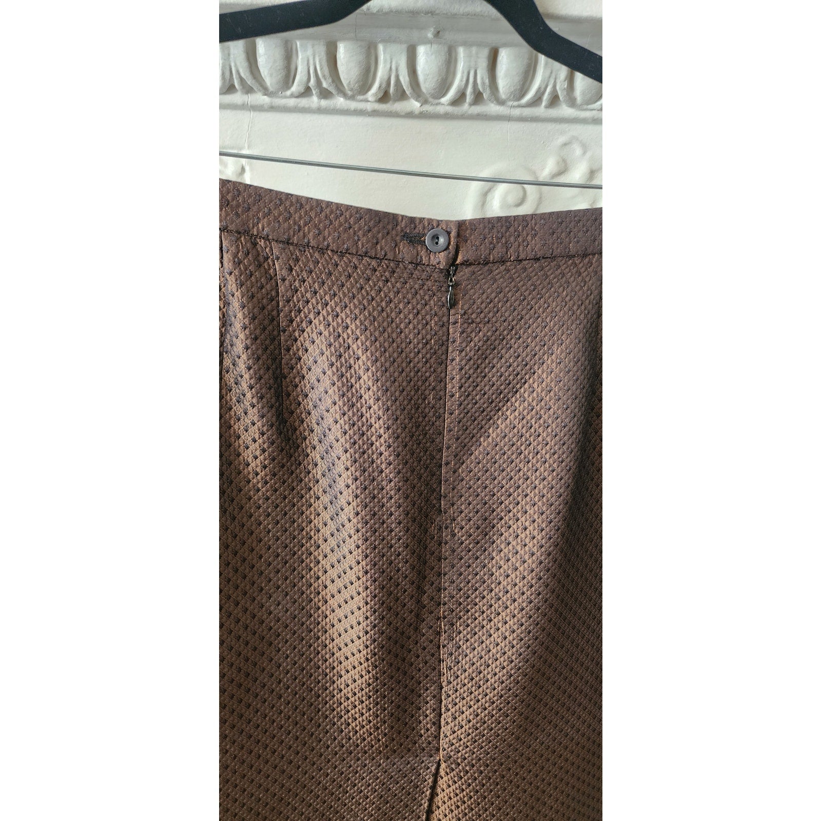 Vintage ESCADA Skirt Brown Metallic Silk Wool Blend Diamond Print / Waist 32" Size 44