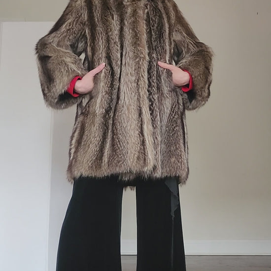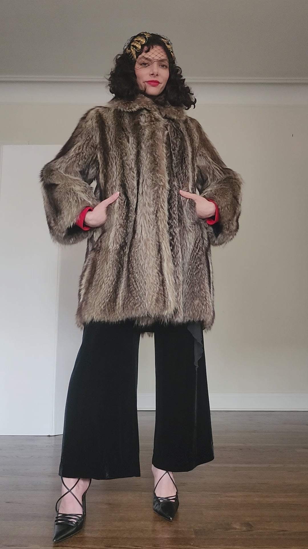 Vintage Fur Coat Silver Tipped Raccoon Hip Length Revillon Boho Style Size Medium SATC