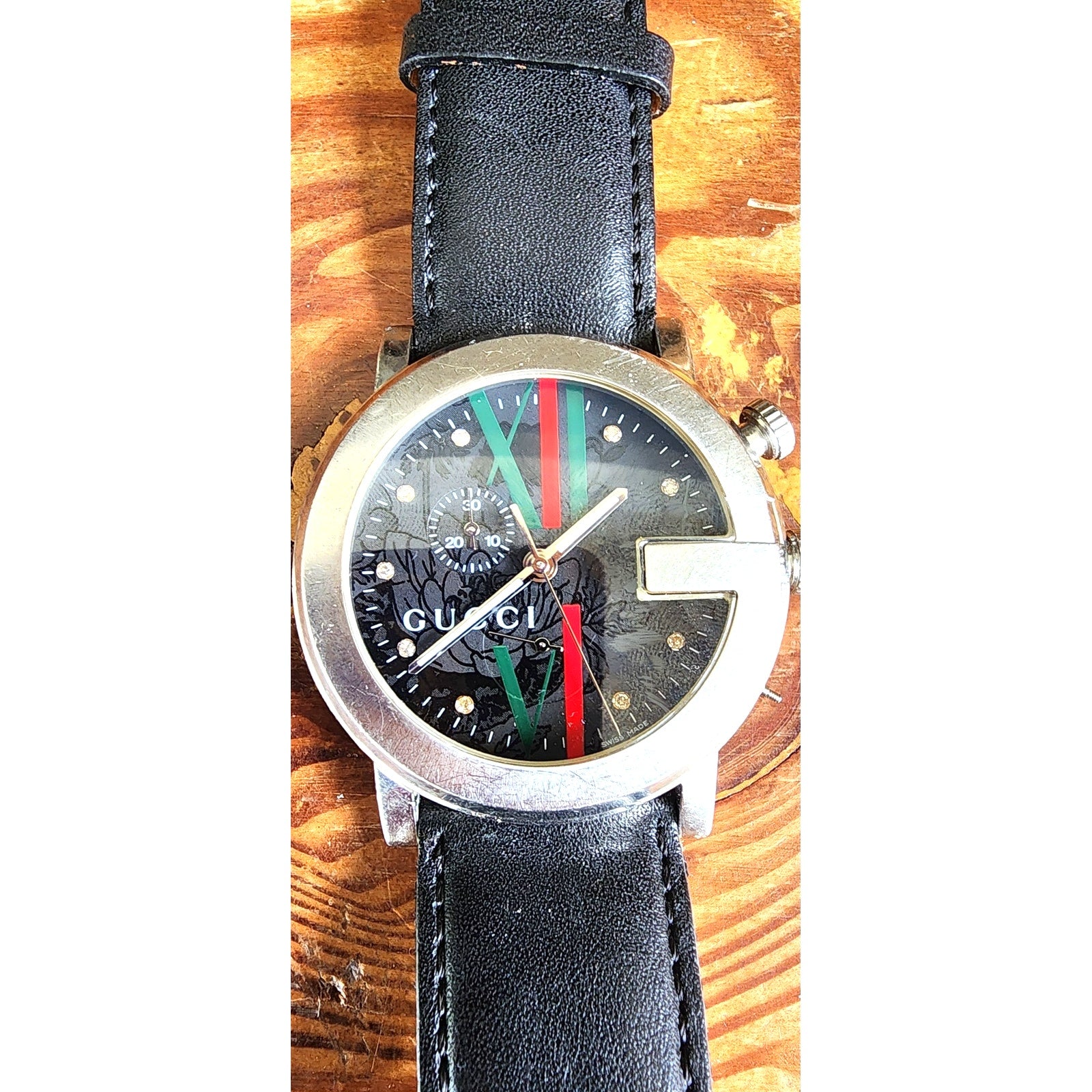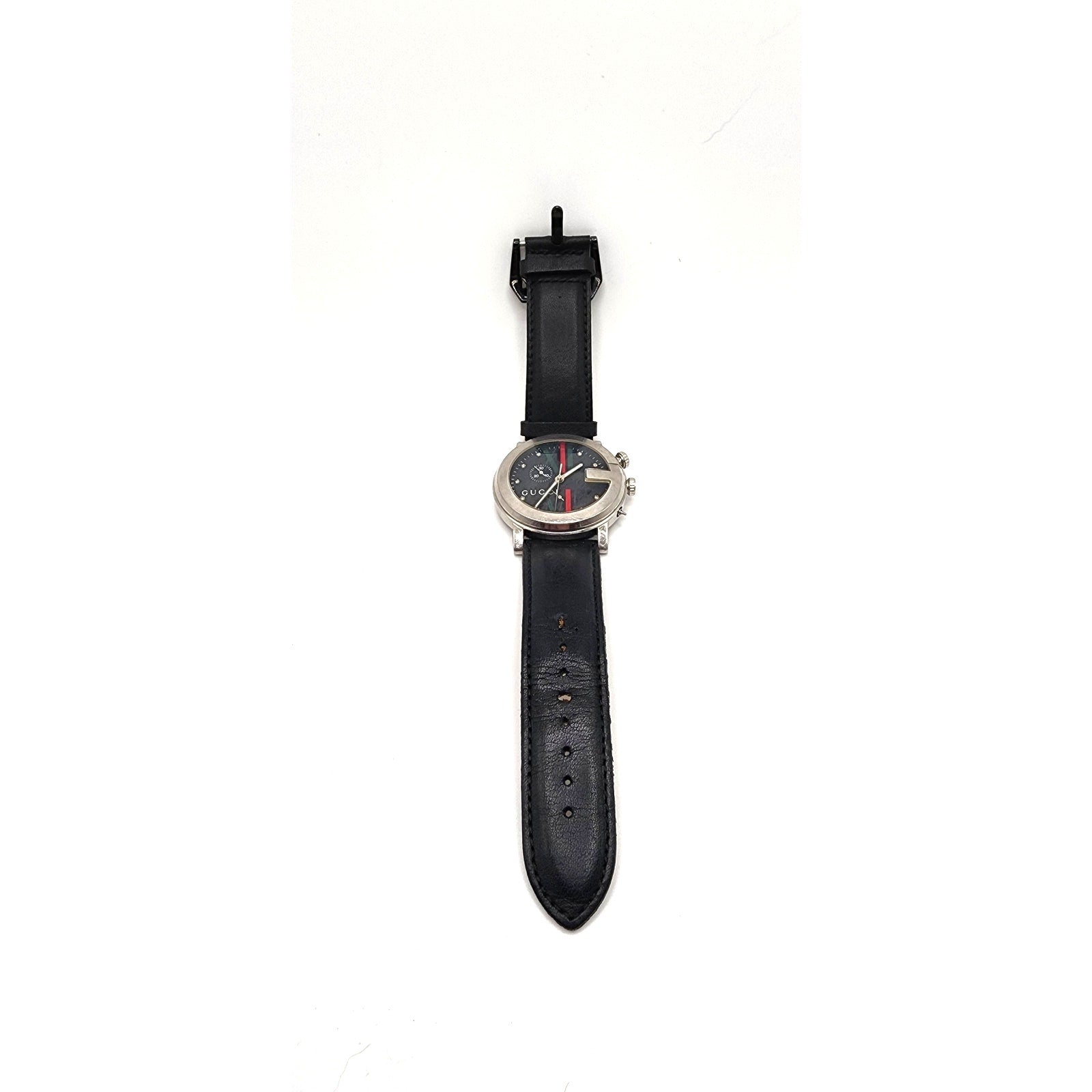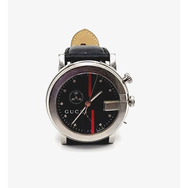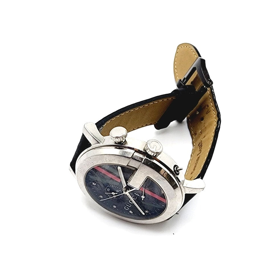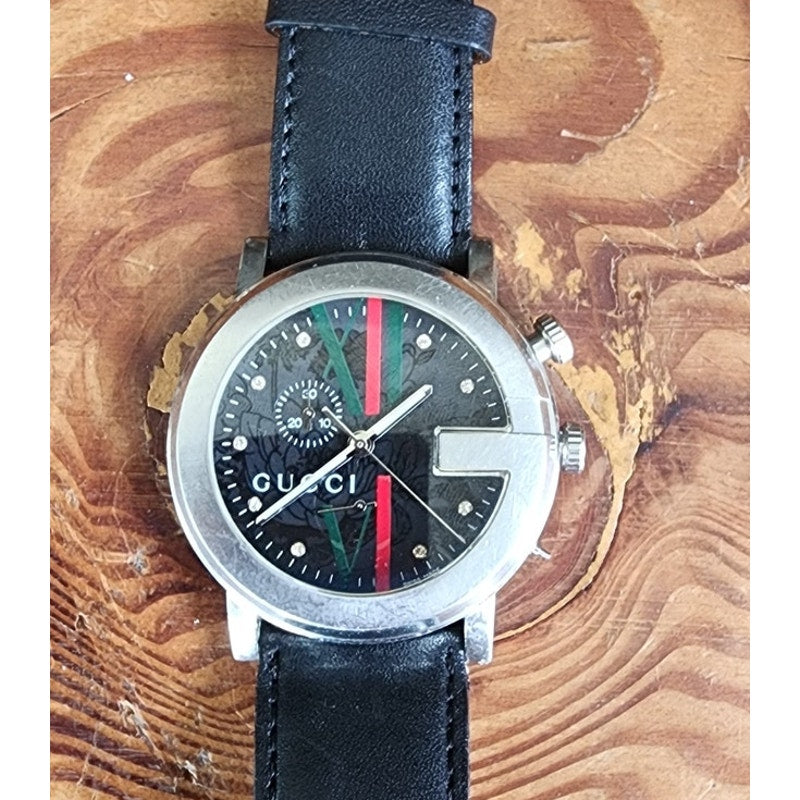 Vintage Gucci Mens Watch 101M Chrono Black Leather Strap