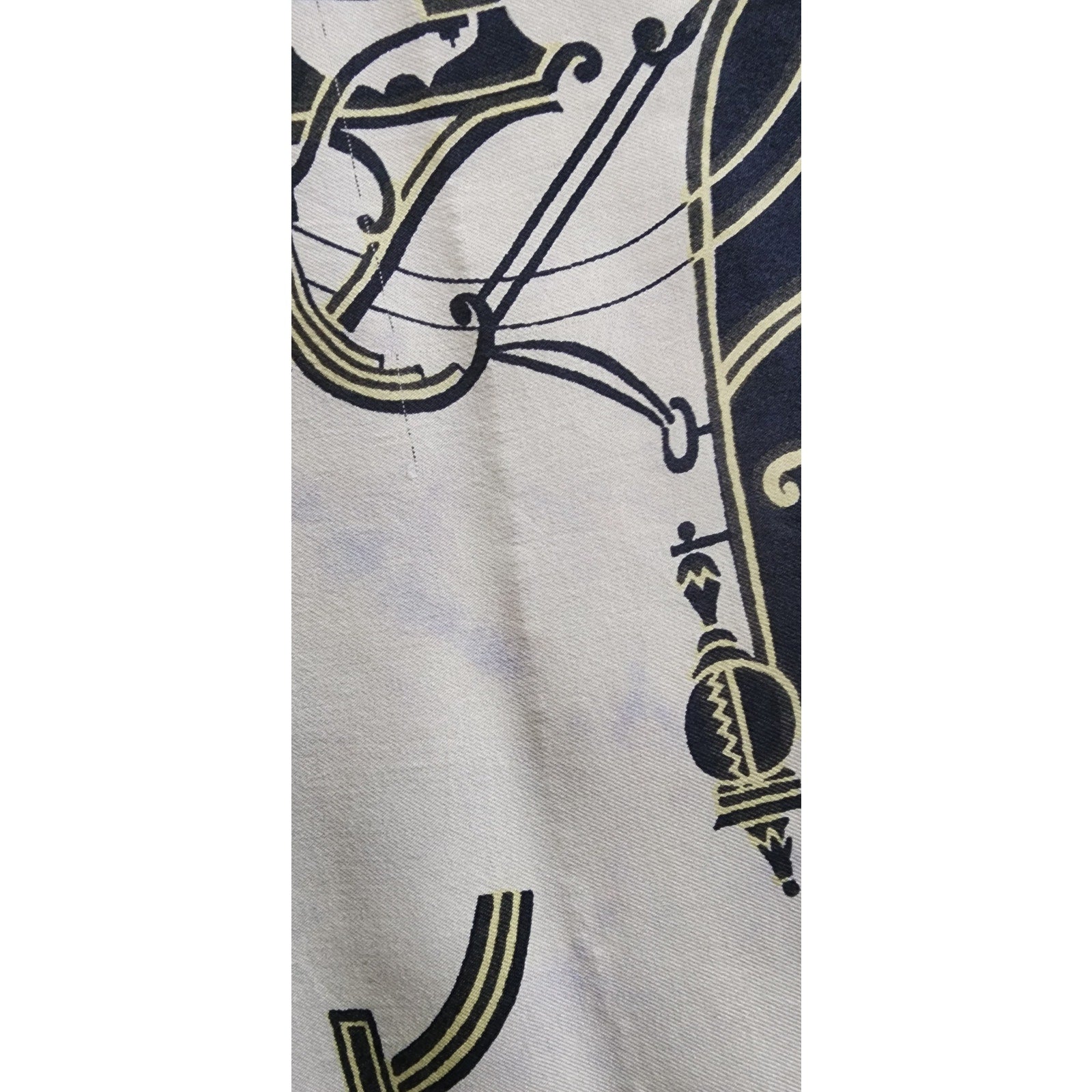 Vintage HERMES Scarf Square Silk Ex-Libris Yellow Hugo Grygkar Horse Carriages