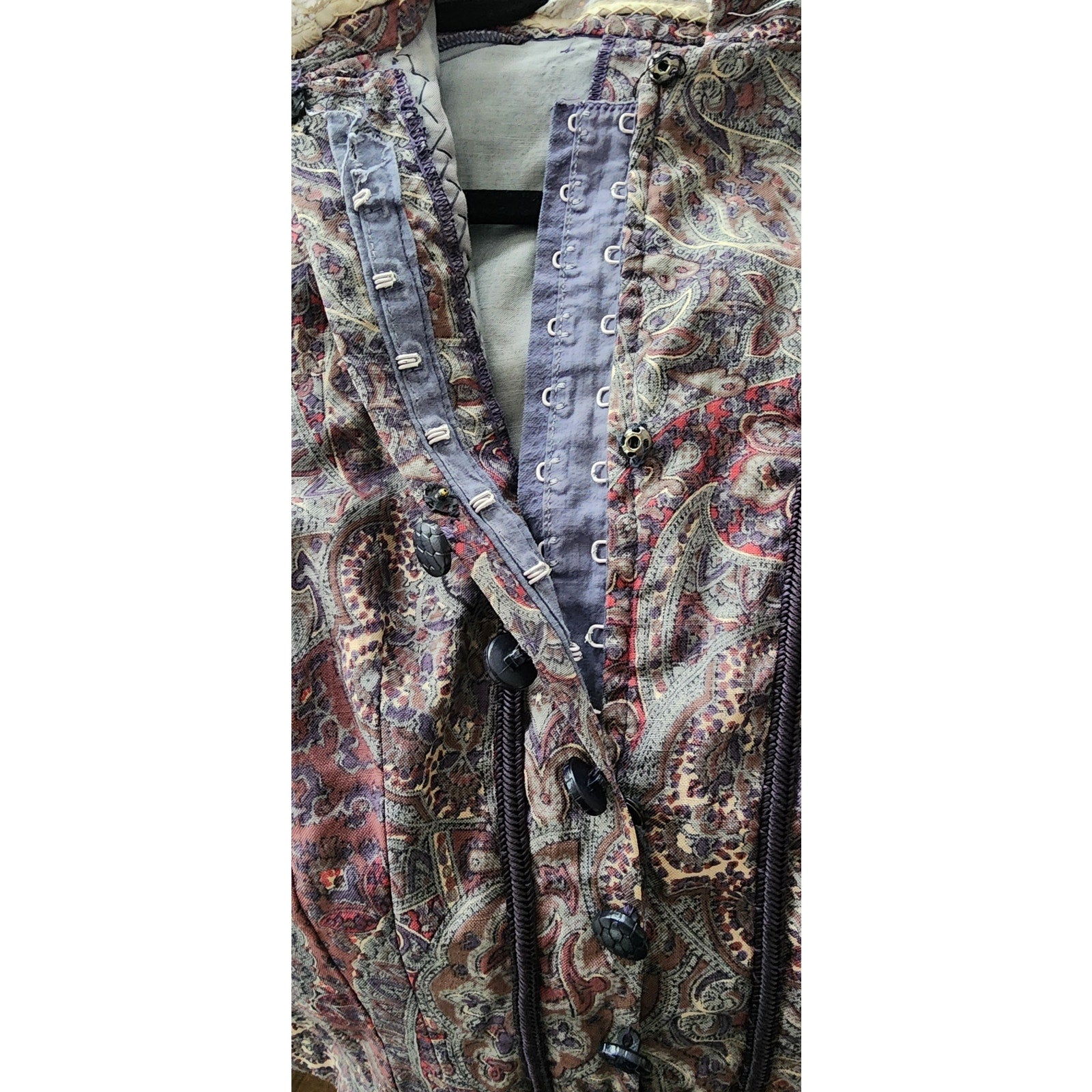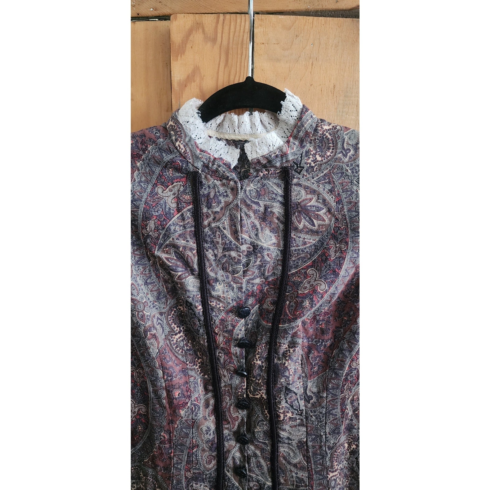 Vintage Neo-Edwardian Jacket Gray Mauve Paisley Print XS
