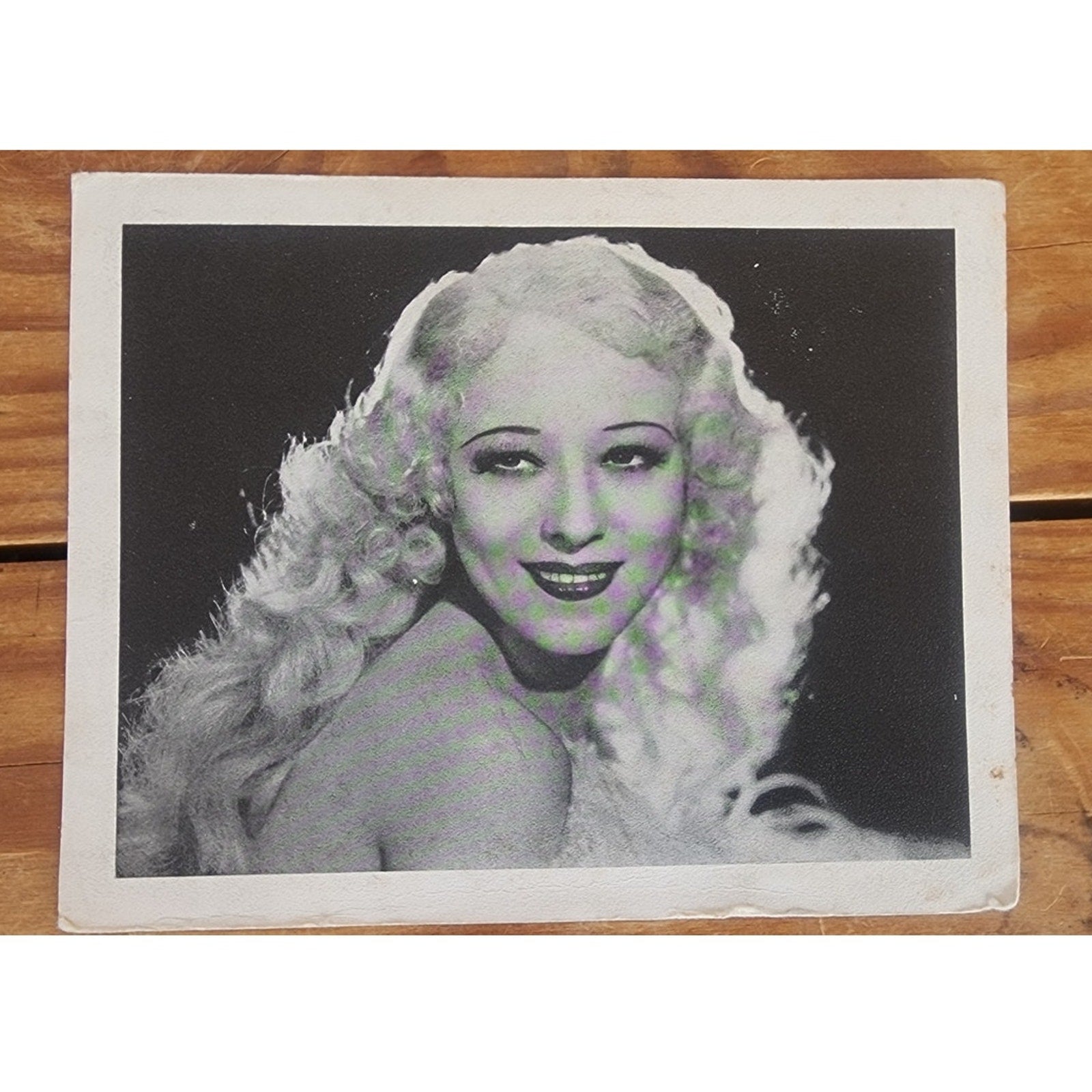 One with her dance routine with large feather fans (very clean, but paper curved) 5" x 7"