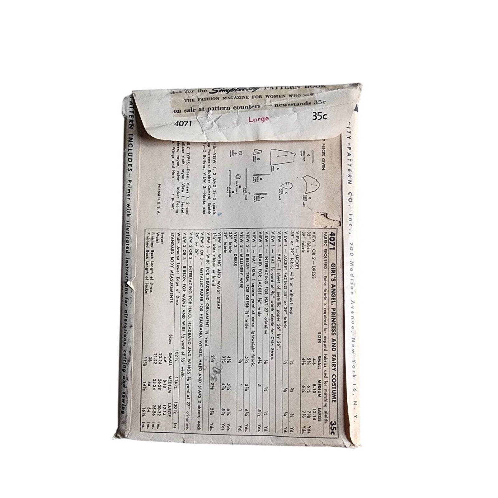 Vintage Sewing Pattern Original 50s Girls Angel Princess Fairy Costume Halloween