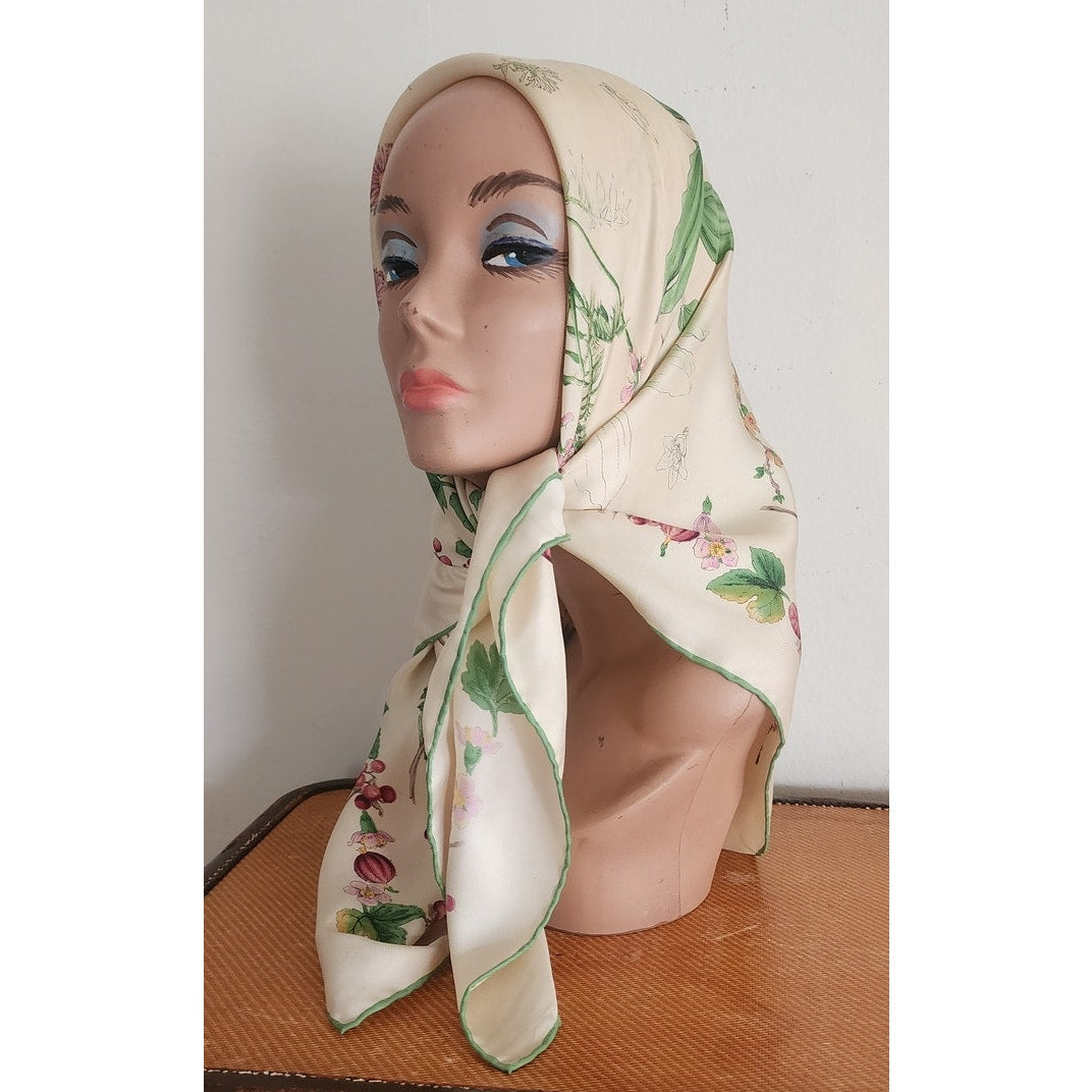 Vintage Tiffany & Co. Scarf Silk Square Botanical Floral Theme Green Cream