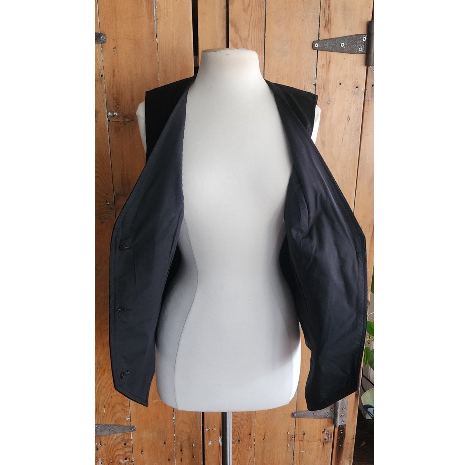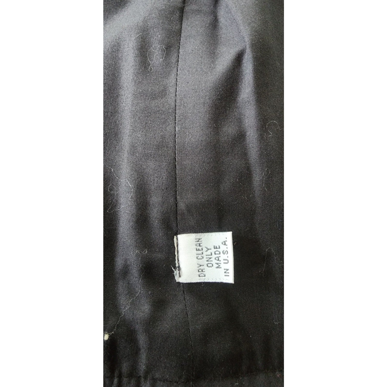 Label tag on vest interior: dry clean only. Made in USA