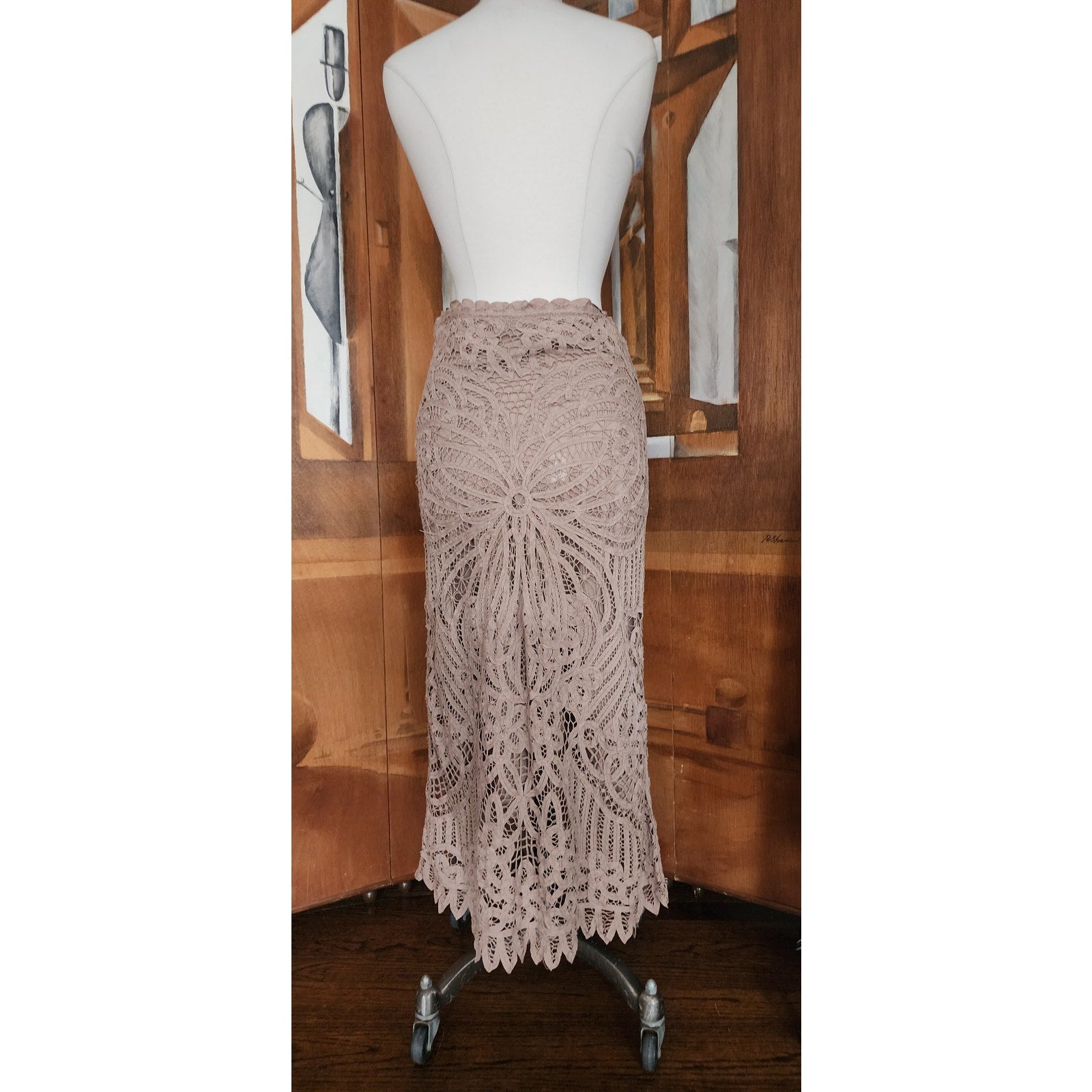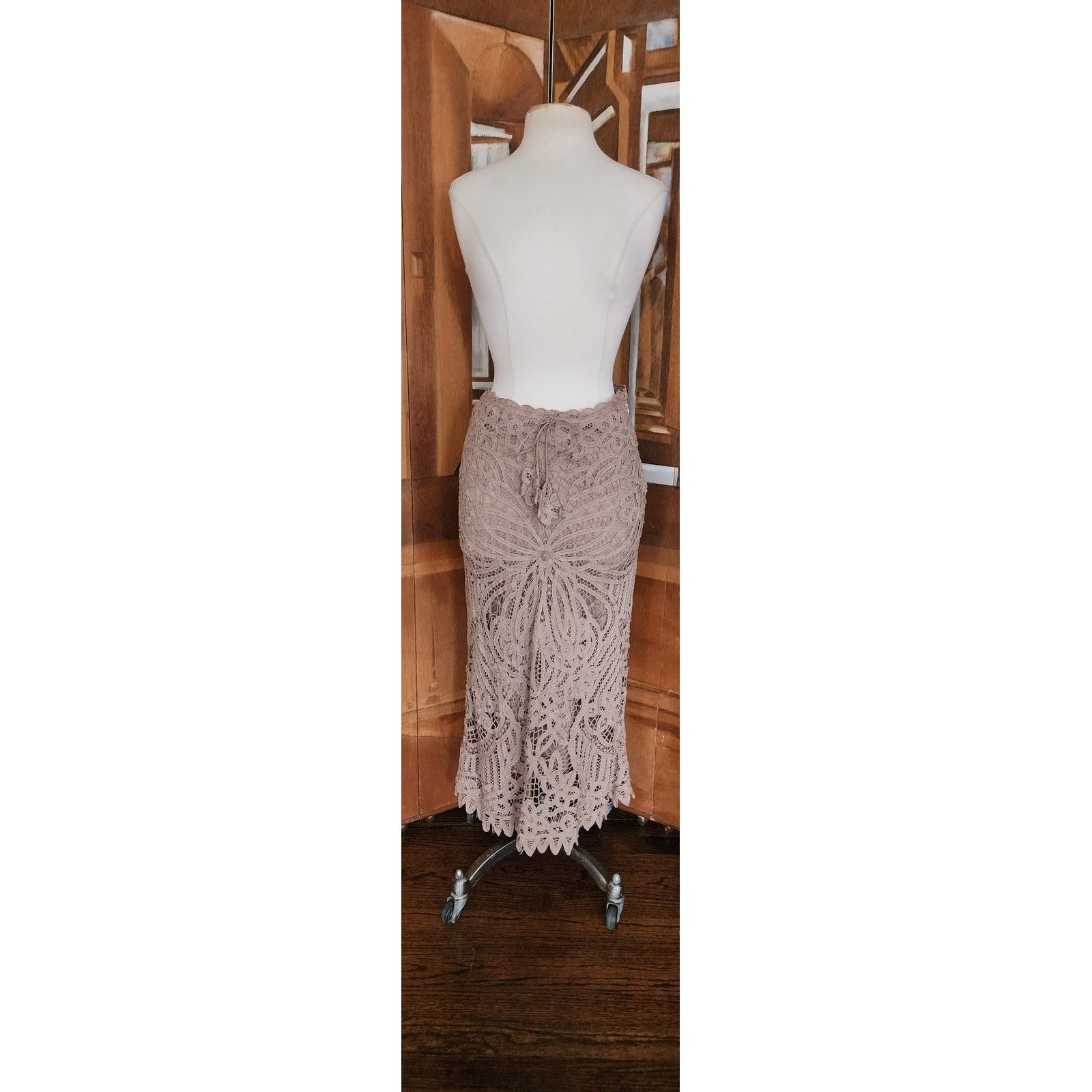 Vintage Y2K Beige Lace Maxi Skirt Boho Chine Collection / S