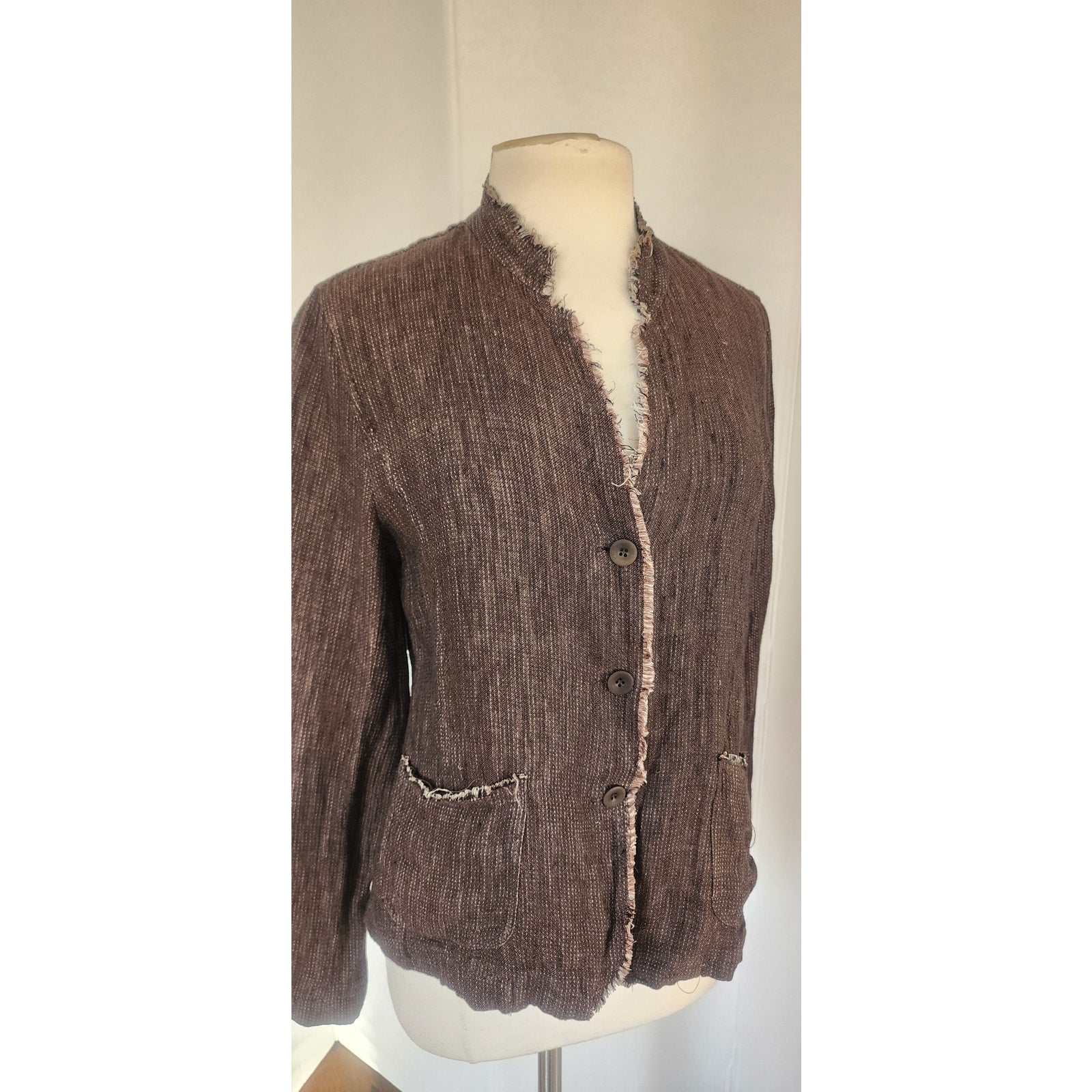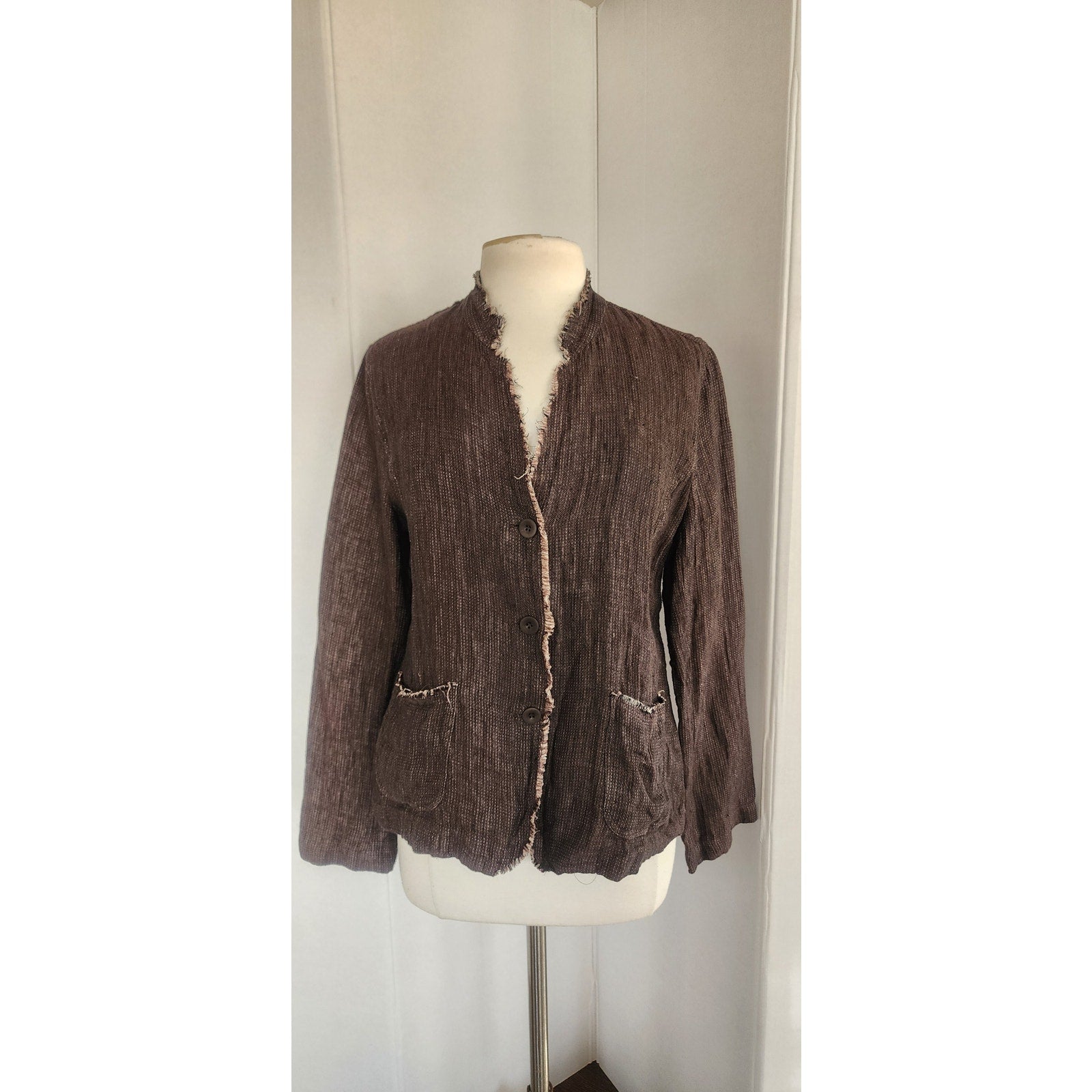 Vintage Y2K Eileen Fisher Brown Linen Jacket Raw Edge Button Down/ M
