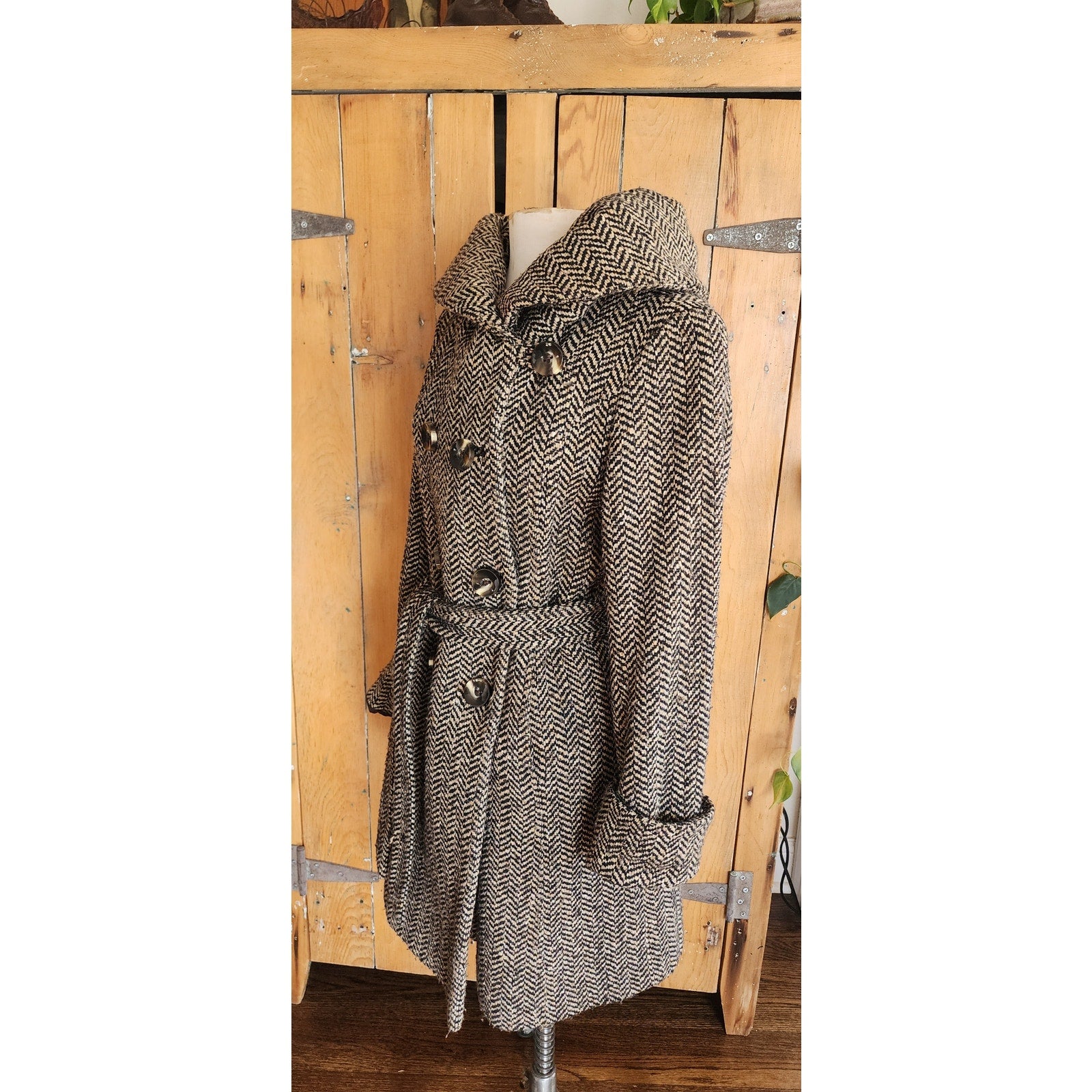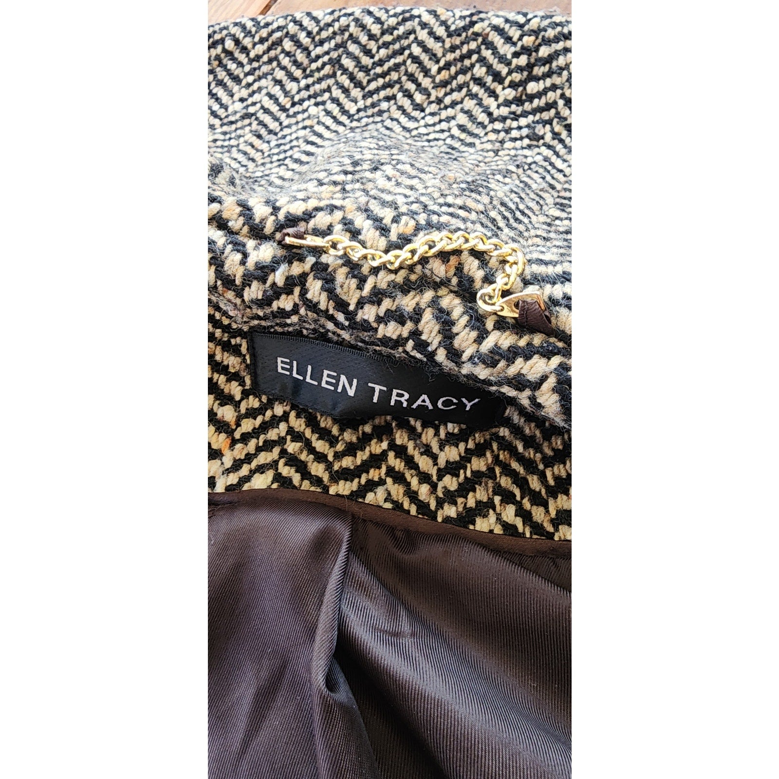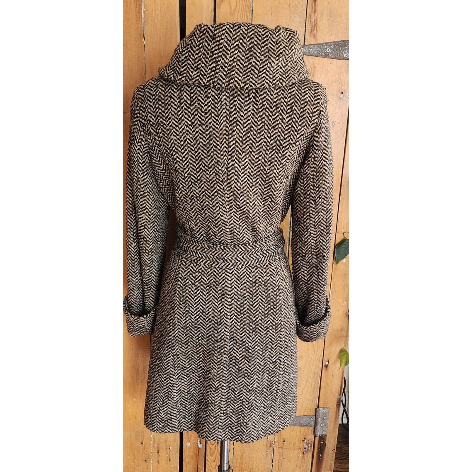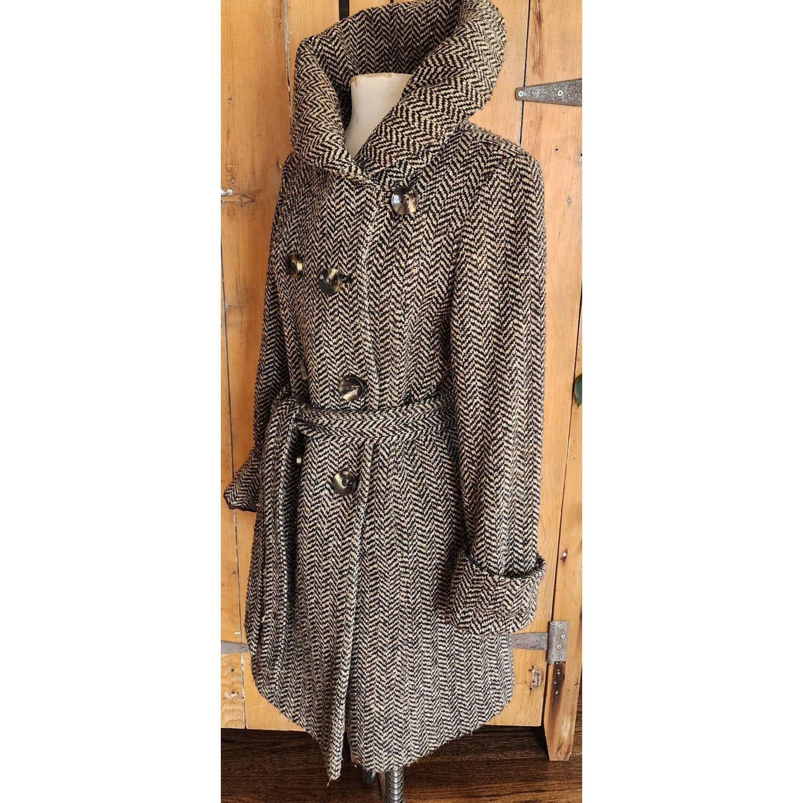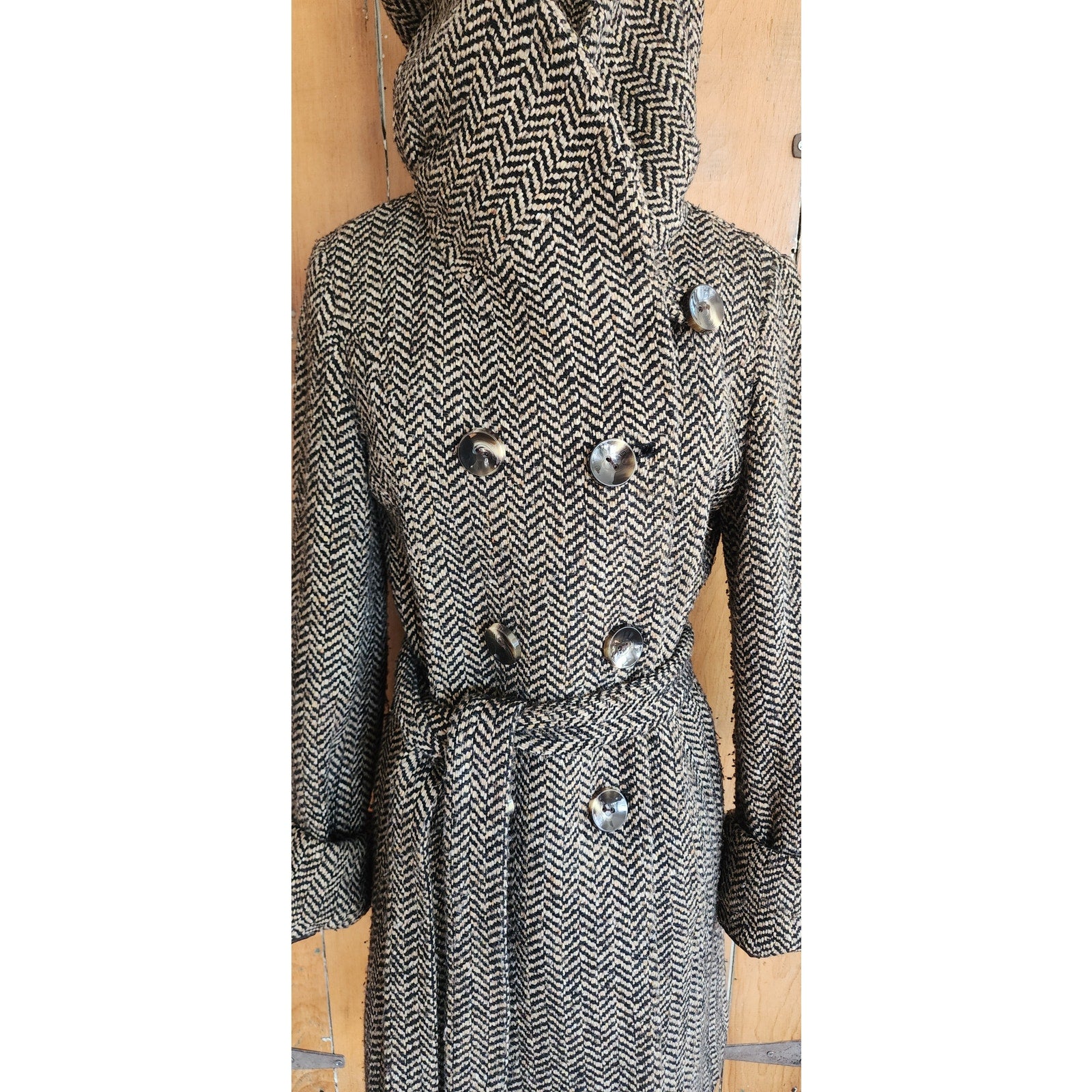 Vintage Y2K Houndstooth Coat Gray Herringbone Wool Large Collar Ellen Tracy / M
