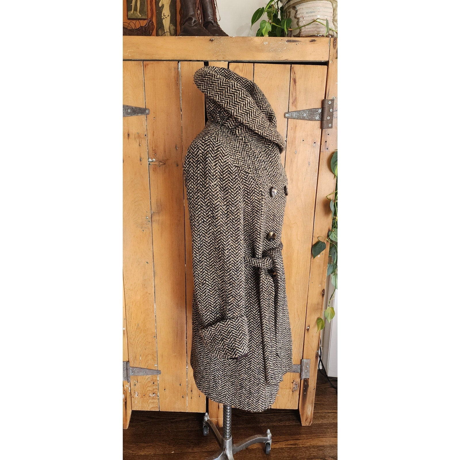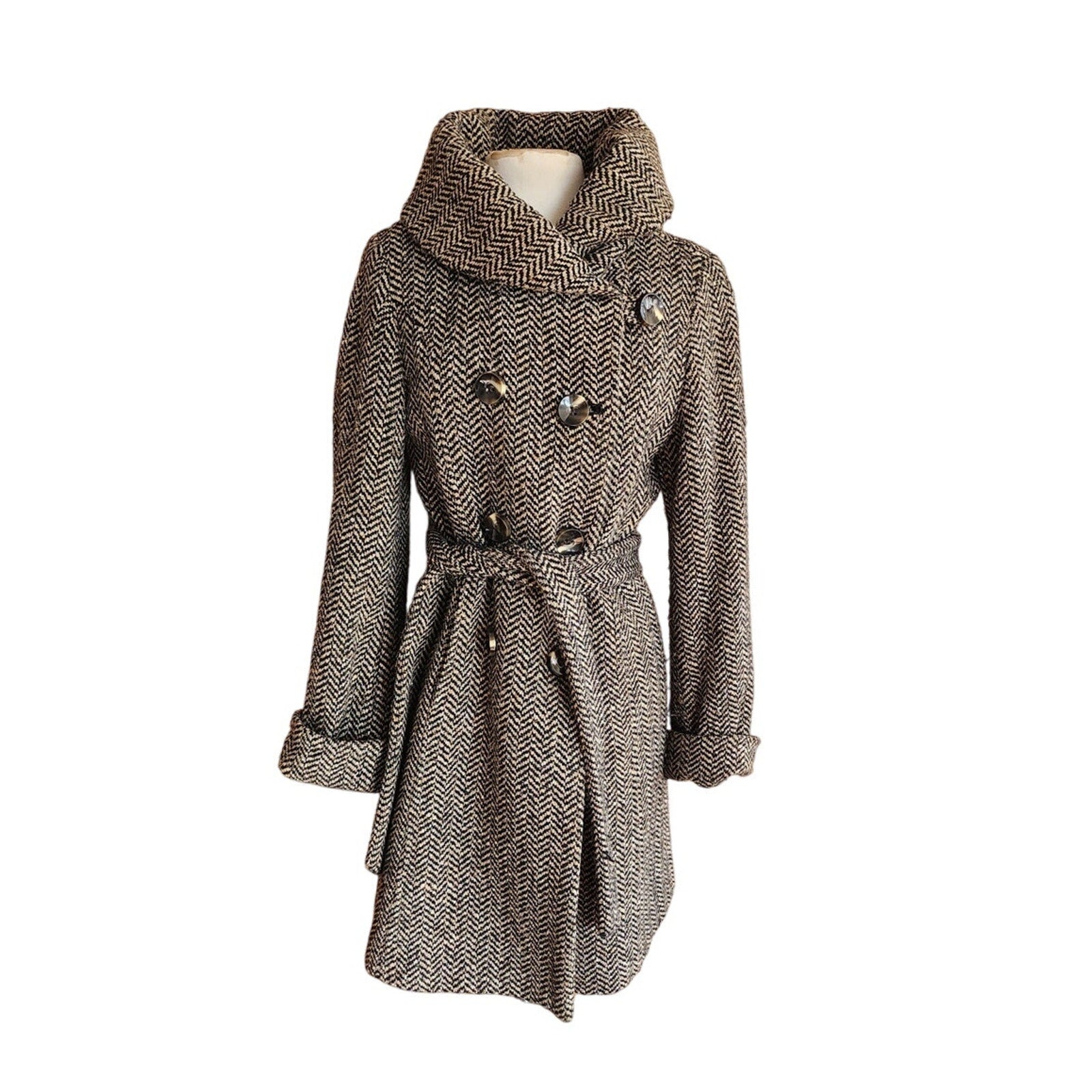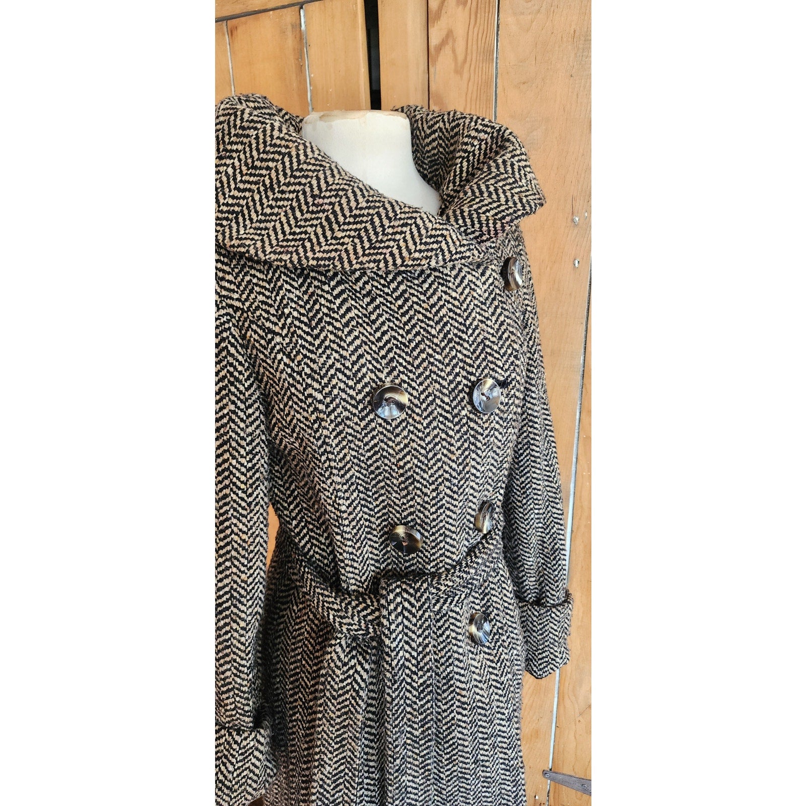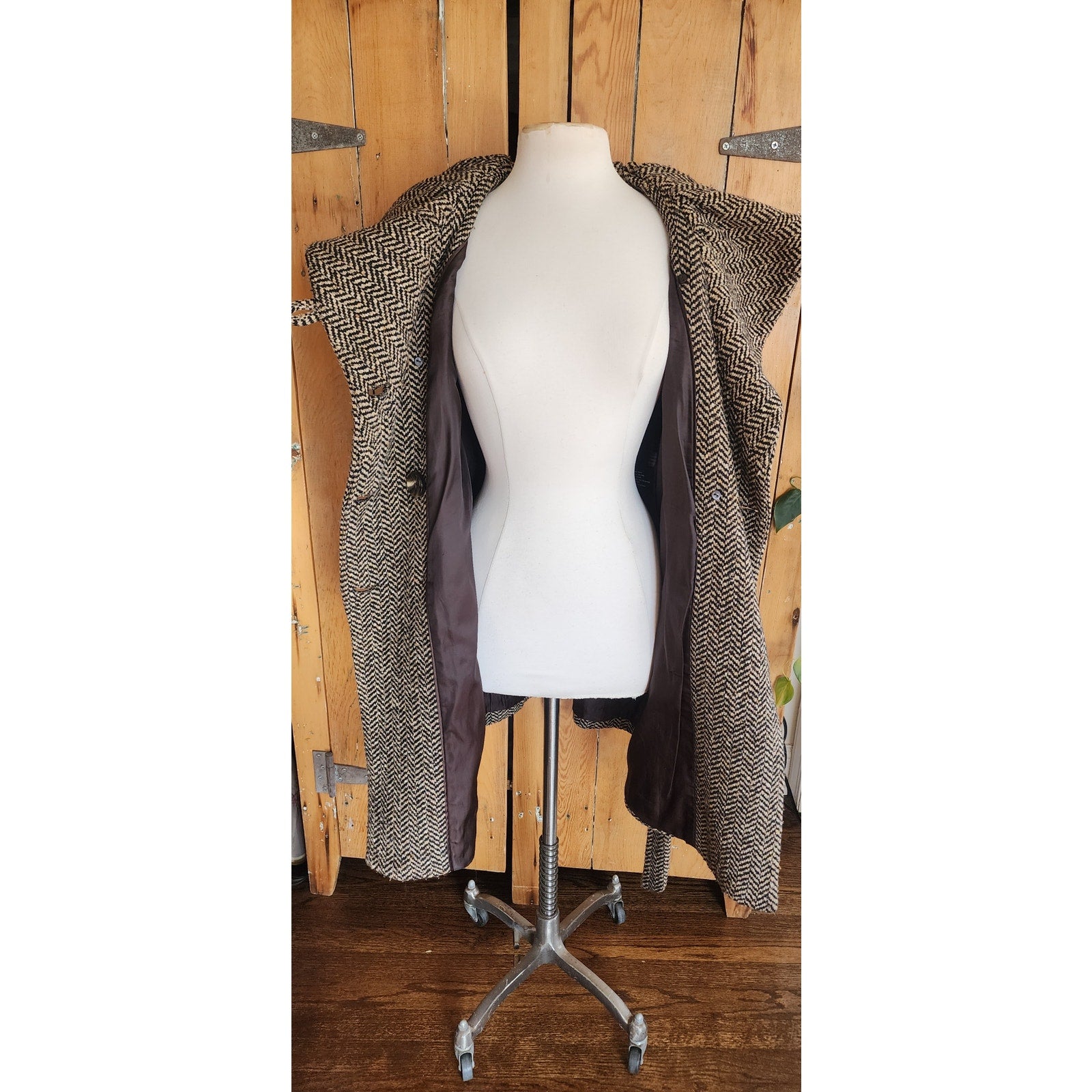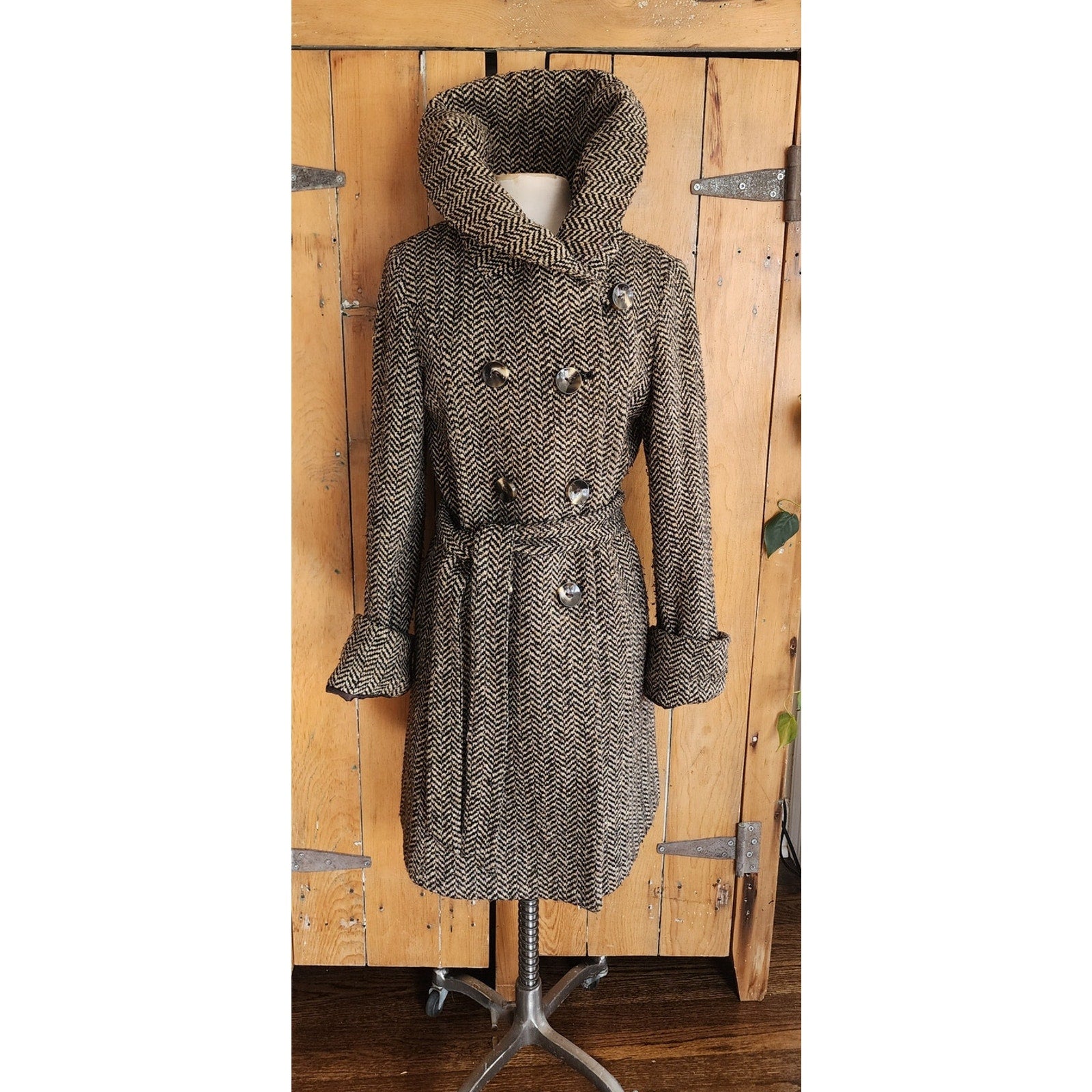 Vintage Y2K Houndstooth Coat Gray Herringbone Wool Large Collar Ellen Tracy / M