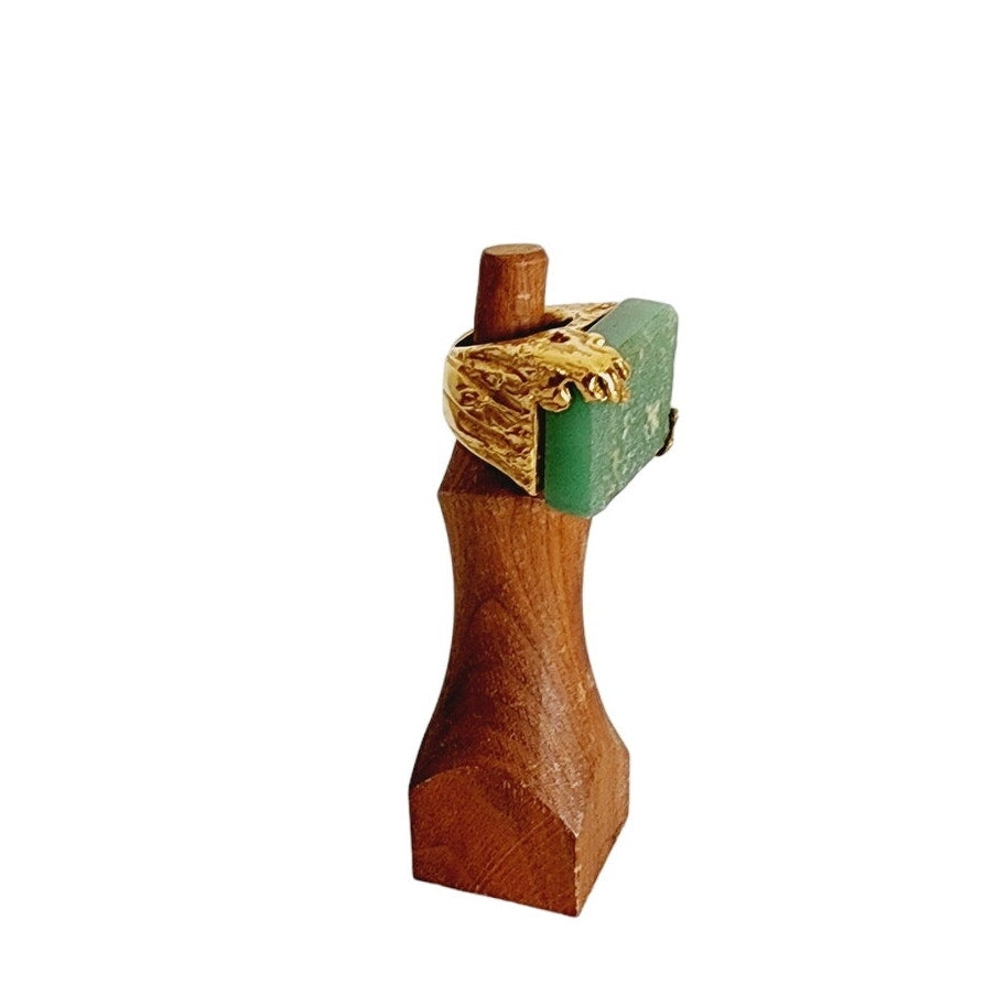 Vintage Yves Saint Laurent Arty Ring Green Aventurine Stone Chunky Gold Base