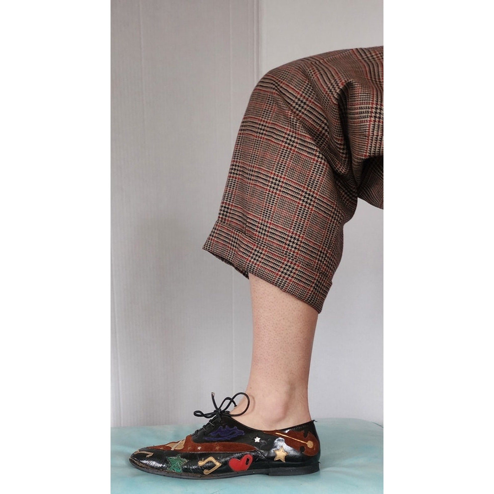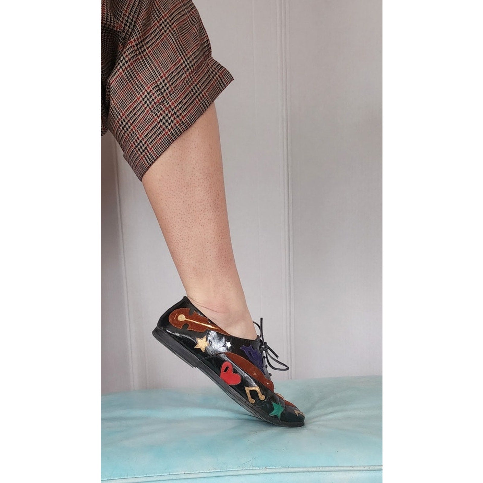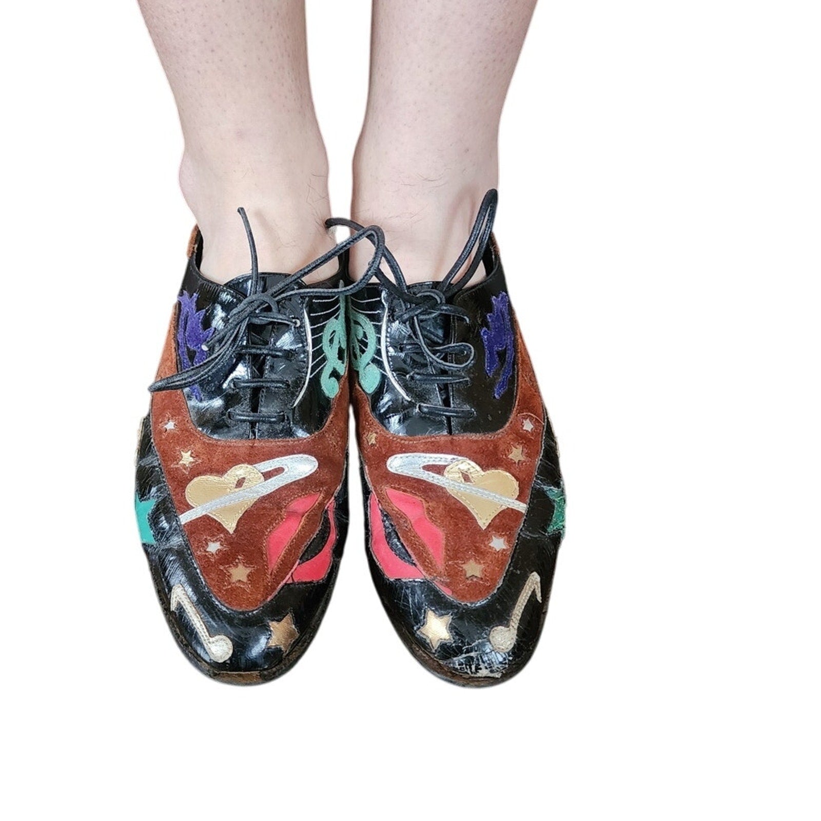 Vintage 90s Lace Up Shoes w/Graphicl Patchwork Music Notes Guitar Hearts Stars Lips